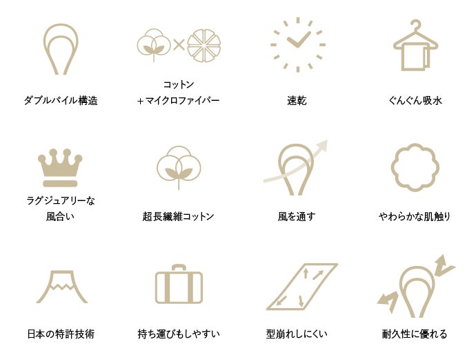 コットンとマイクロファイバーのダブル構造だからこその「離水力」と「速乾性」
