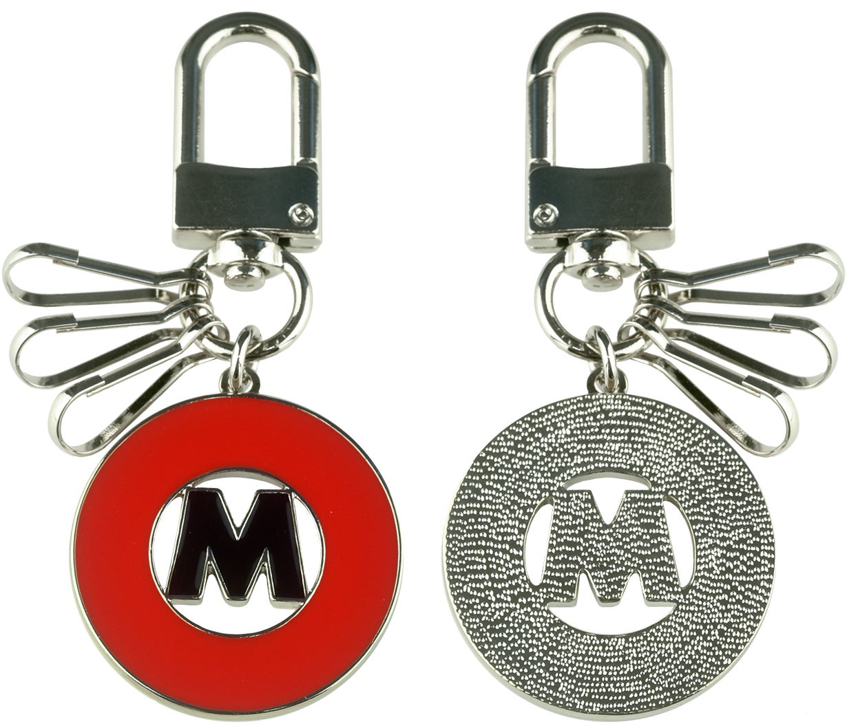 キーホルダーはスタイリッシュなカラビナと3つのキーフック付き。
