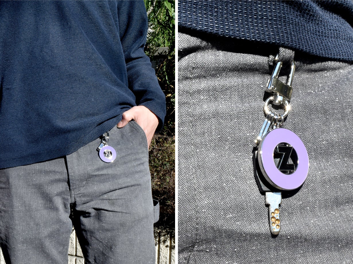 このシンボルマークをバックチャームとキーホルダーに仕立てました。