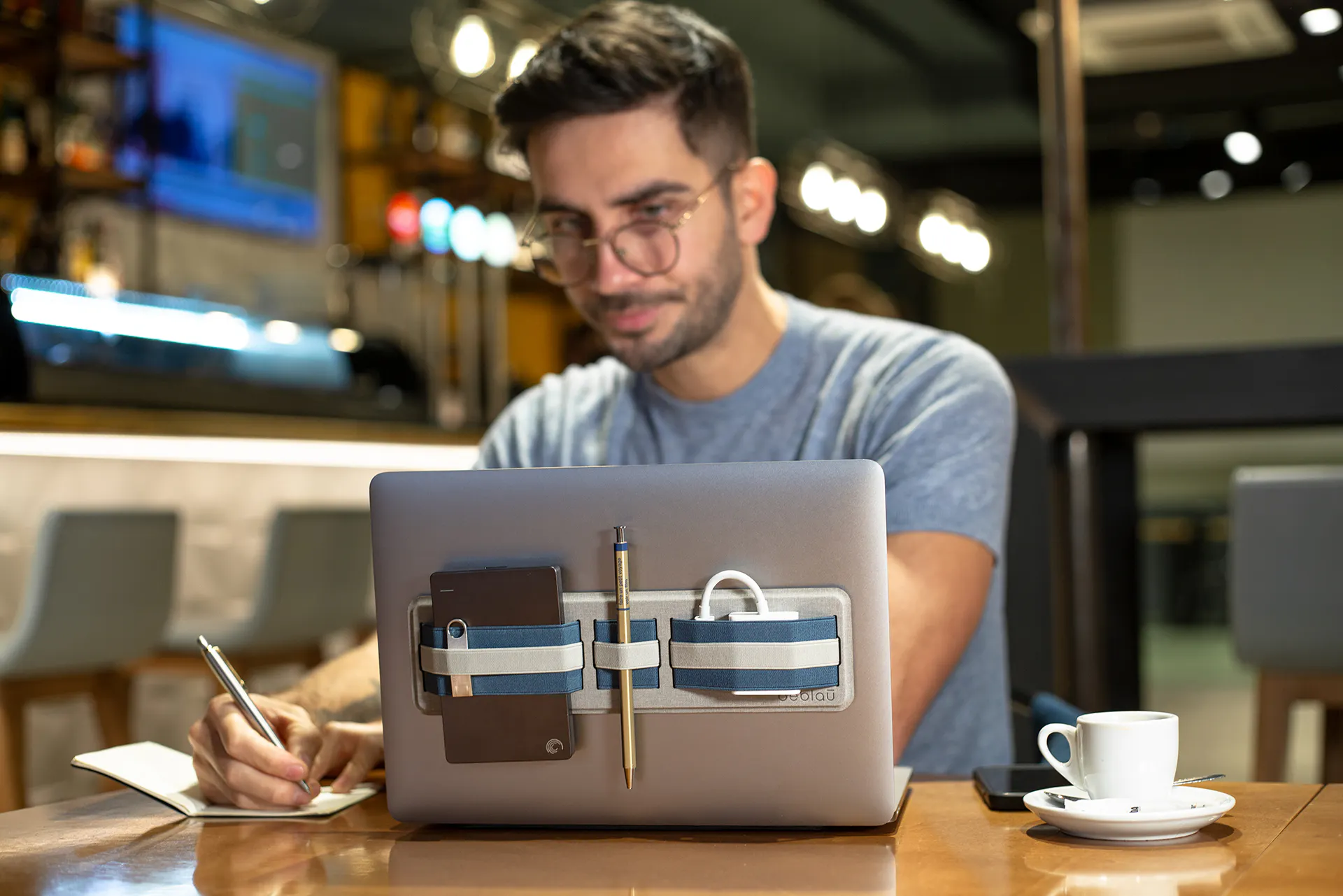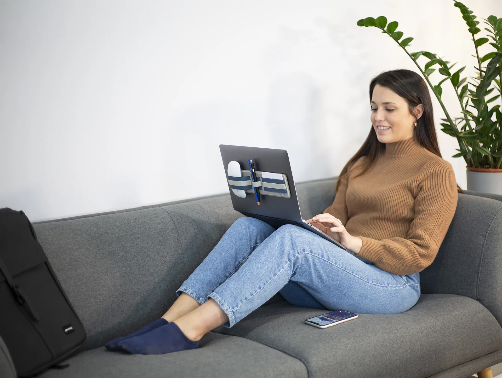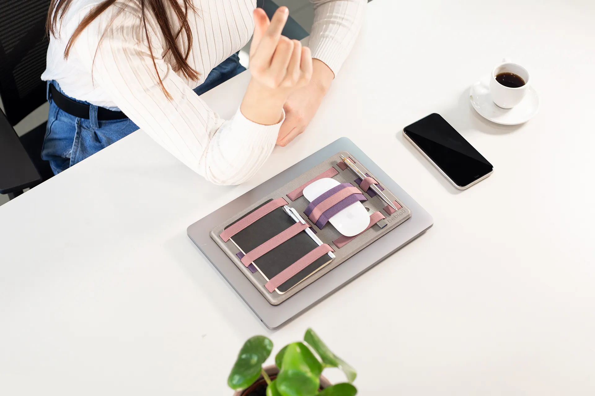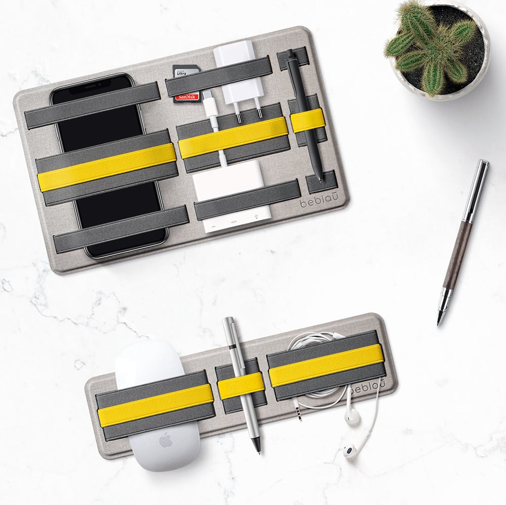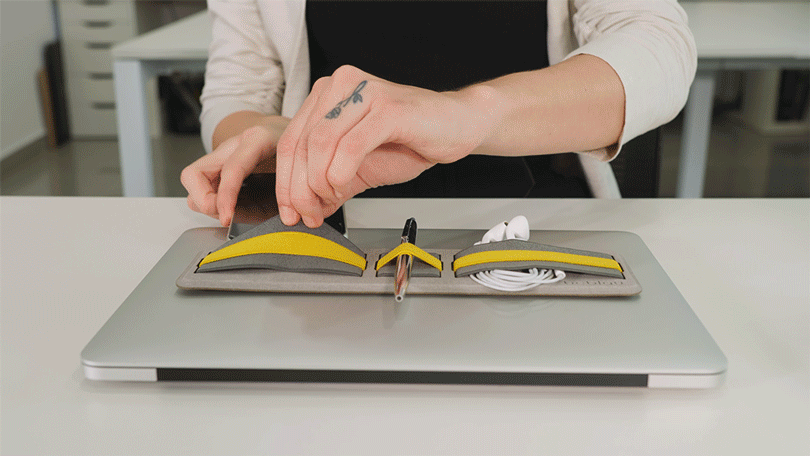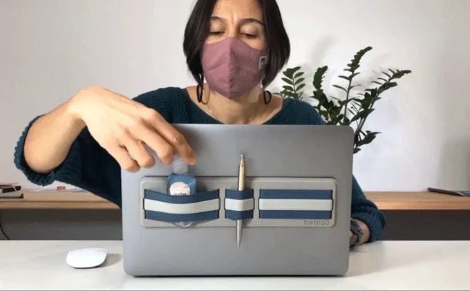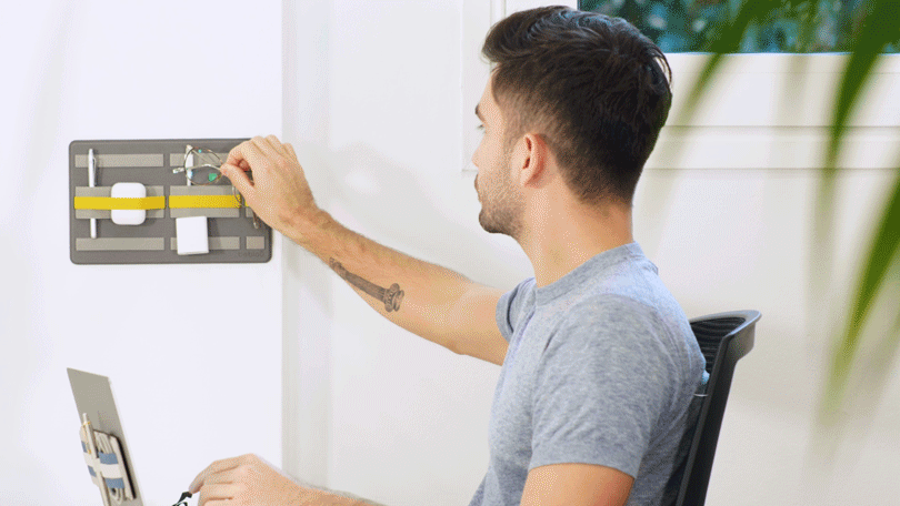 スマホやモバイルバッテリー、マウスなど必要なものをひとまとめにしてラップトップに貼り付けておけば、オフィスから会議室、デスク間もシームレスな移動が可能です。