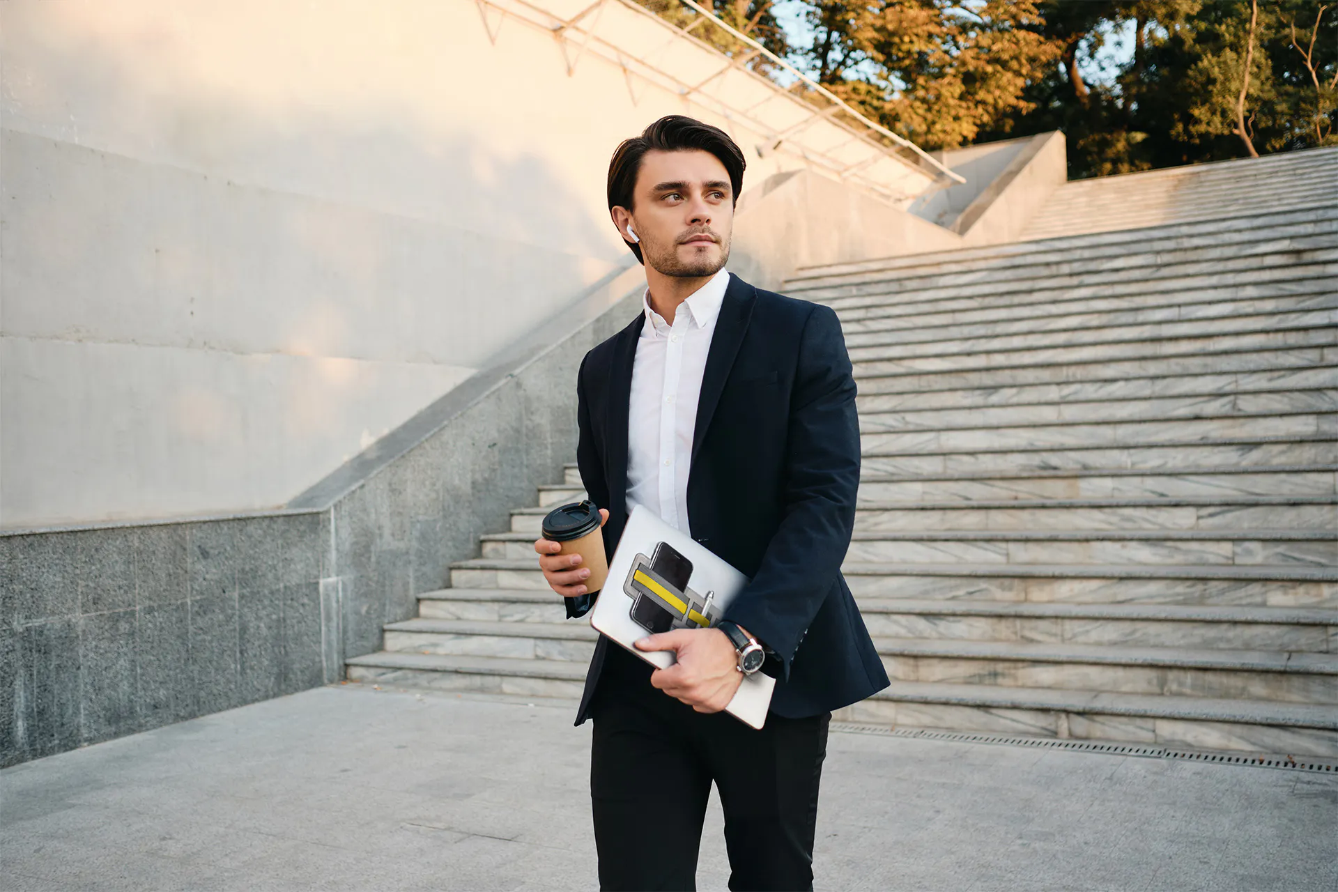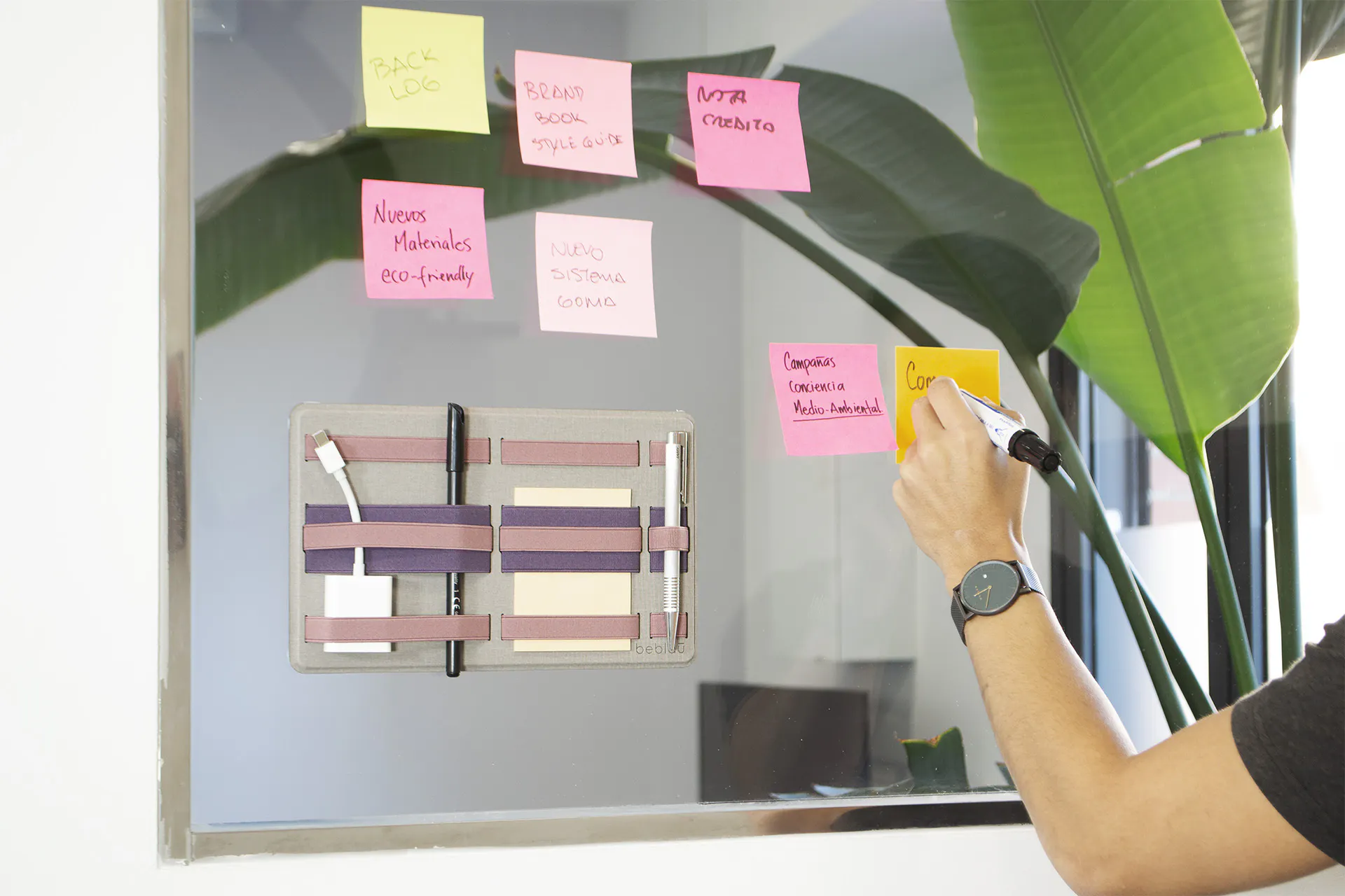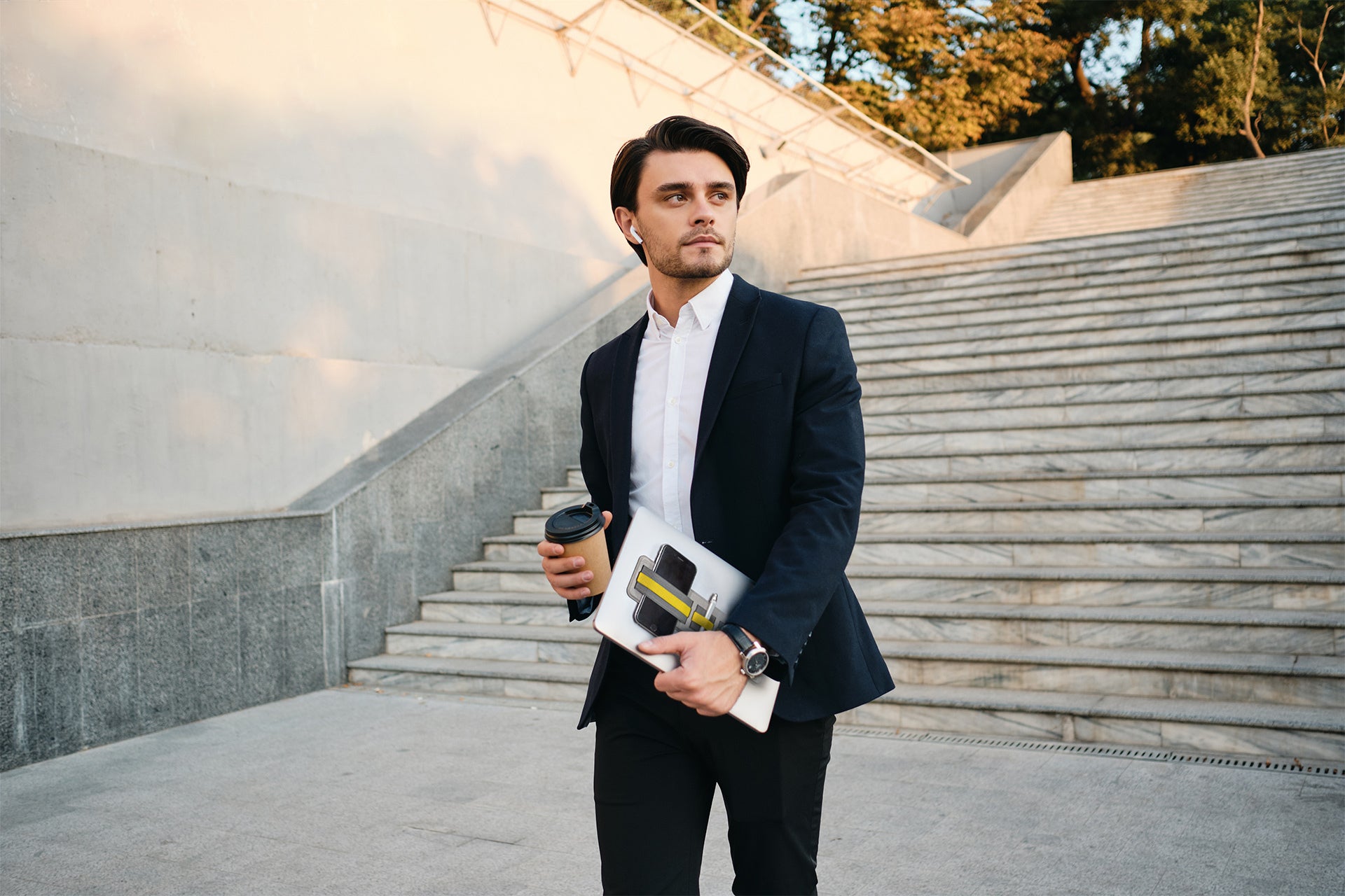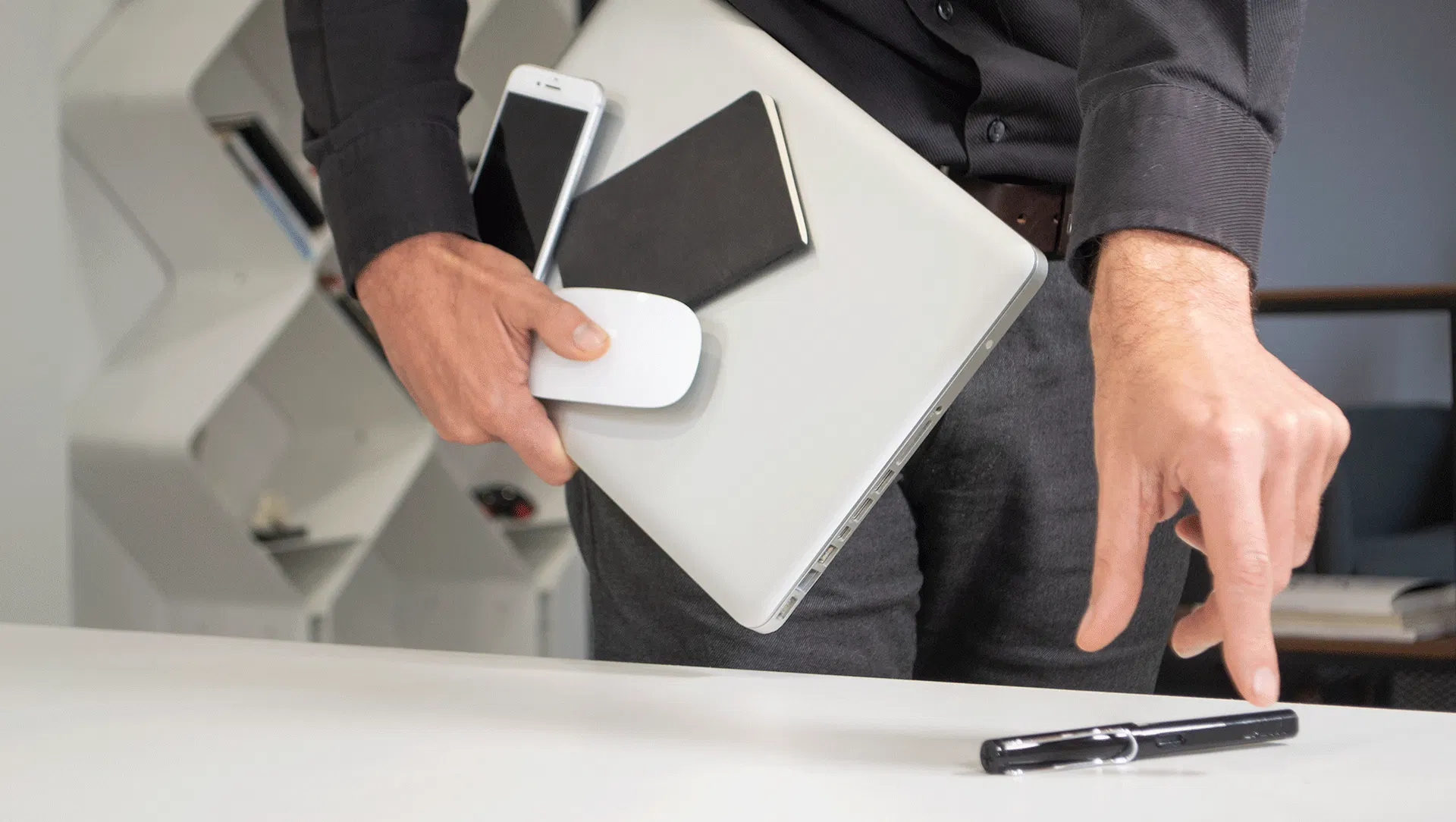 スマホやモバイルバッテリー、マウスなど必要なものをひとまとめにしてラップトップに貼り付けておけば、オフィスから会議室、デスク間もシームレスな移動が可能です。