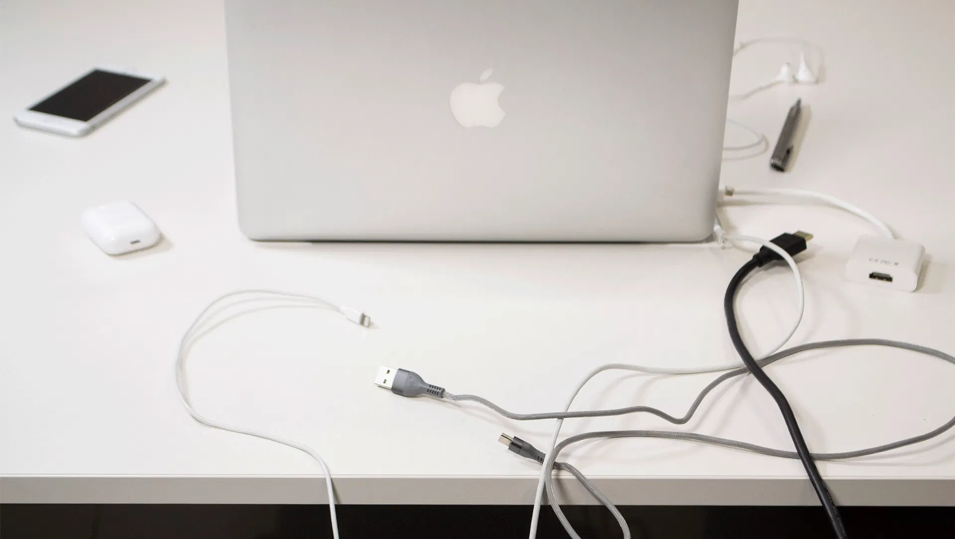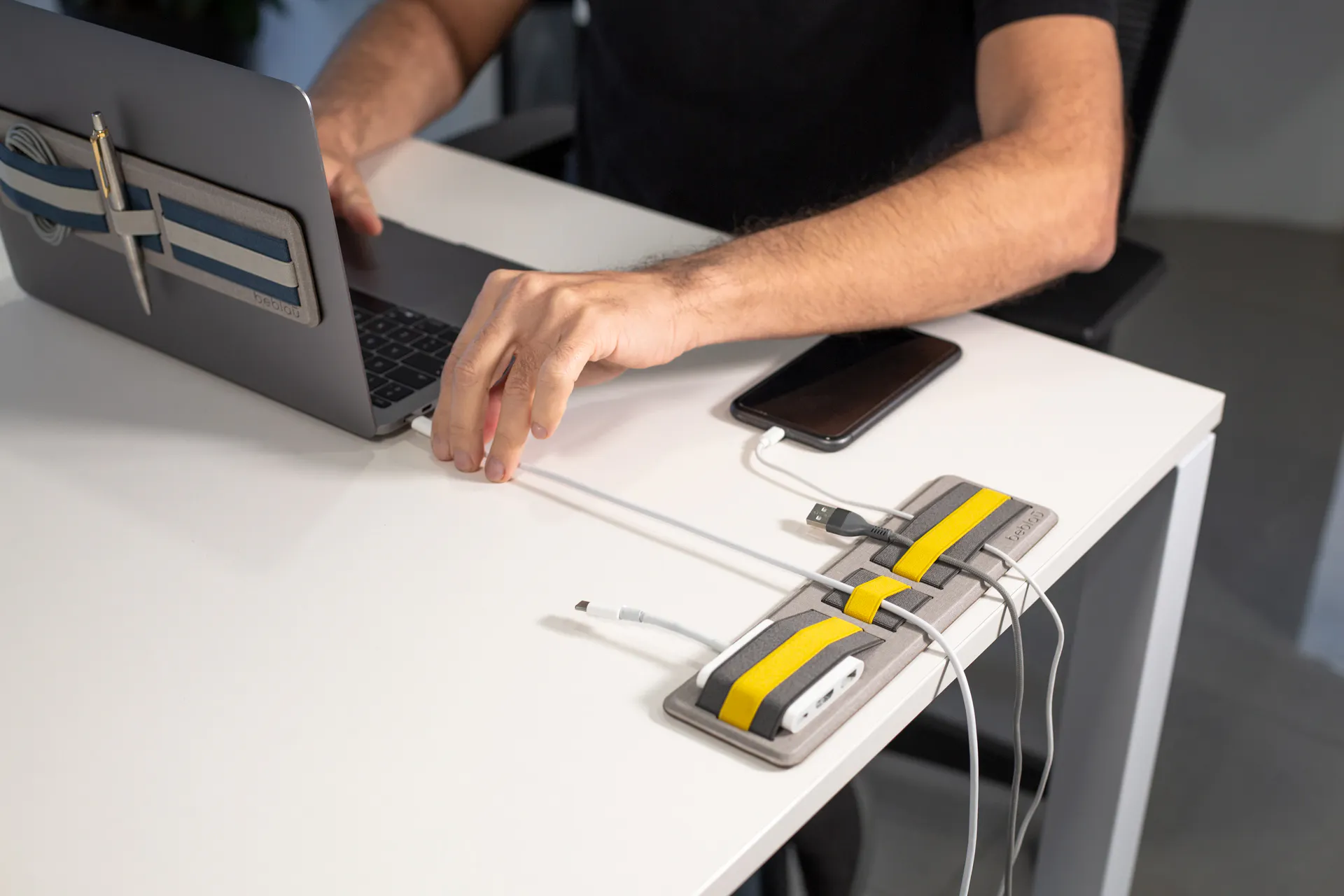 「SHIFT」は移動時だけでなくデスクでも大活躍。ゴチャつきがちなケーブルをまとめておけばスムーズなワークスペースが実現します。