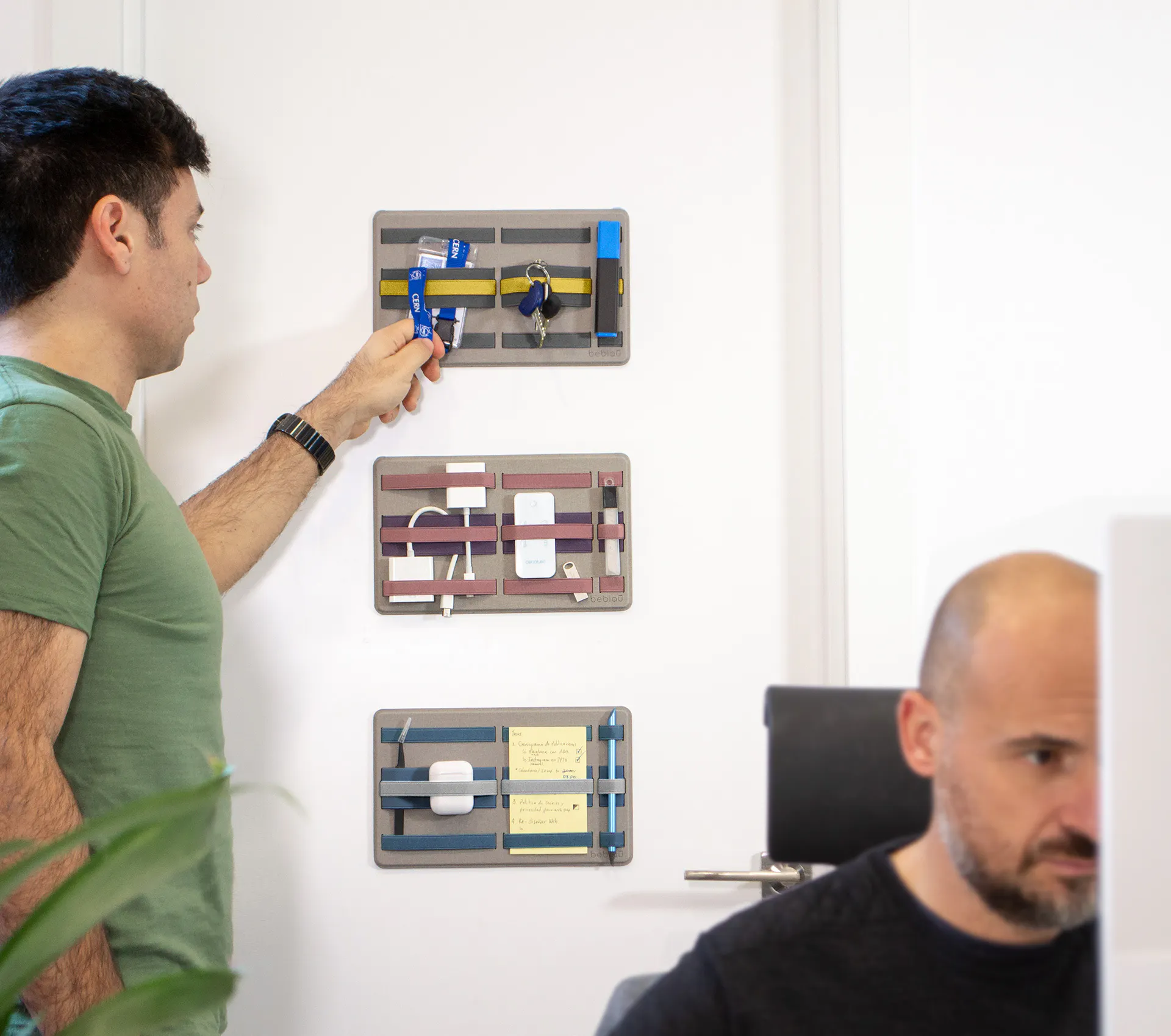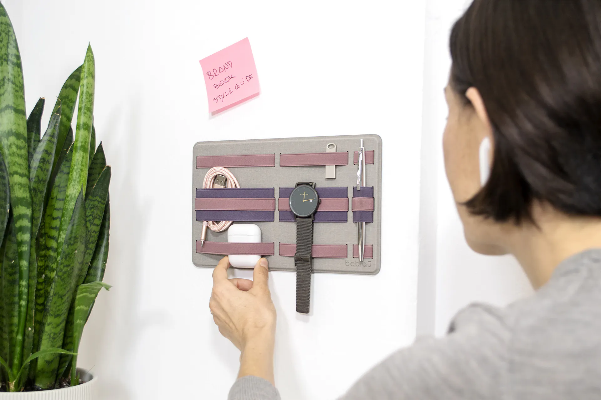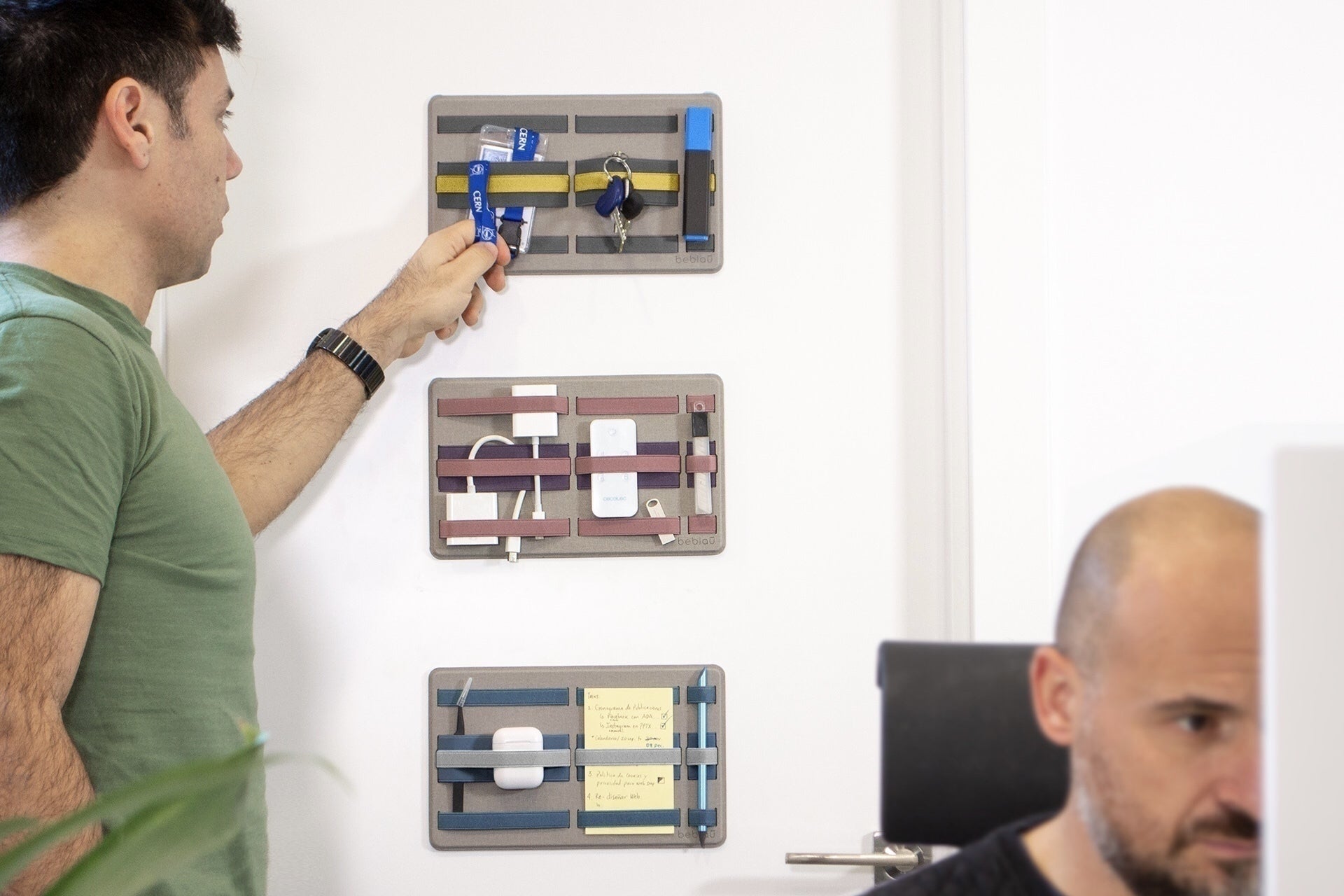 ラップトップ、デスク、壁面などに貼り付けることができ、オフィスやバッグの中で散乱しがちな小物類をスマートに収納することができます。*何度も張り替えする為には設計されておりません。