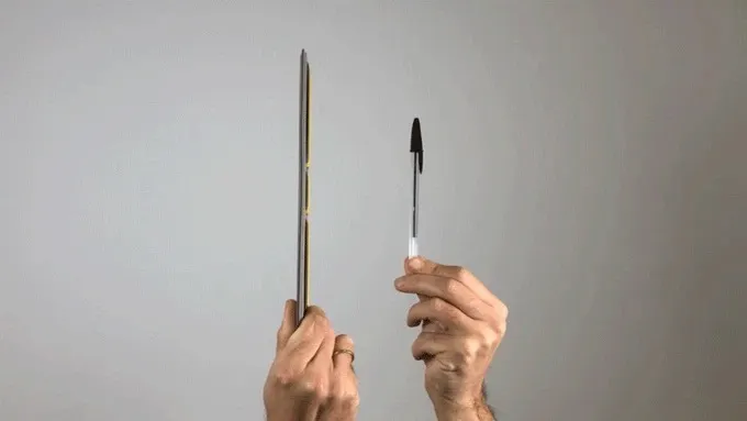 「SHIFT」はペンと比べるとその薄さがよく分かります。ラップトップと一緒にバックパックに収納するときも引っかかりがありません。