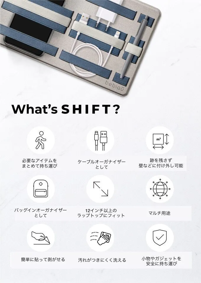 「SHIFT(シフト)」はガジェットやケーブルをまとめて整理できるオーガナイザー。