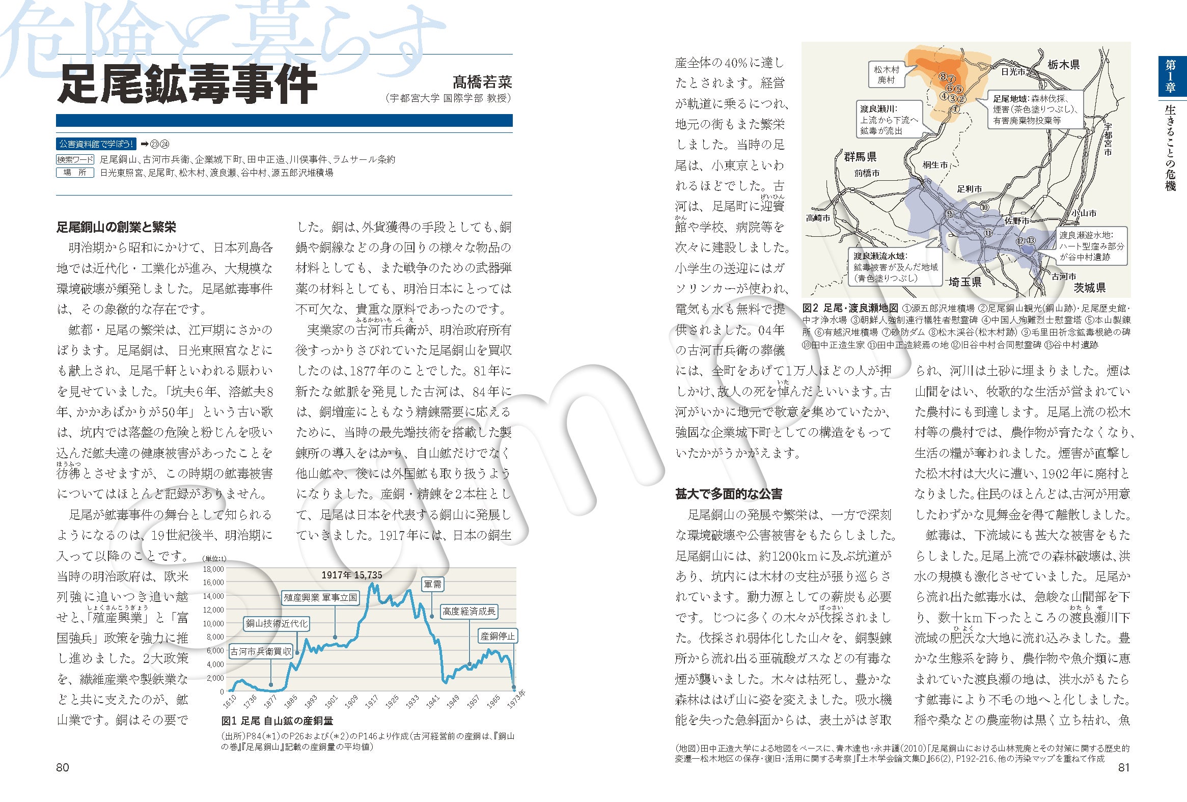 そこで本書では、13の代表的な公害事例を取りあげ、1項目5頁のコンパクトな解説を収録することにしました。また文字情報だけに頼るのではなく、写真や様々な図版を用いて問題を理解していただくことができるようにしました。