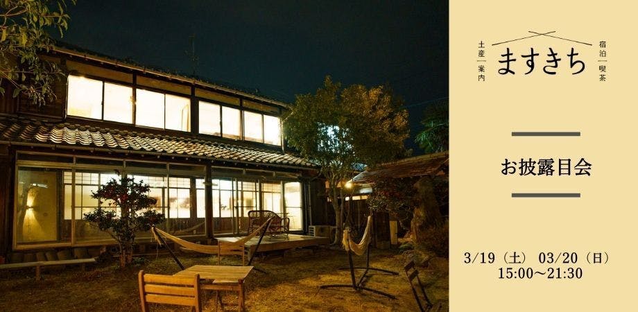 3/24(木)から宿泊予約を受け付けているため、その前の週の3/19日(土)と3/20(日)にお披露目会を開催します。