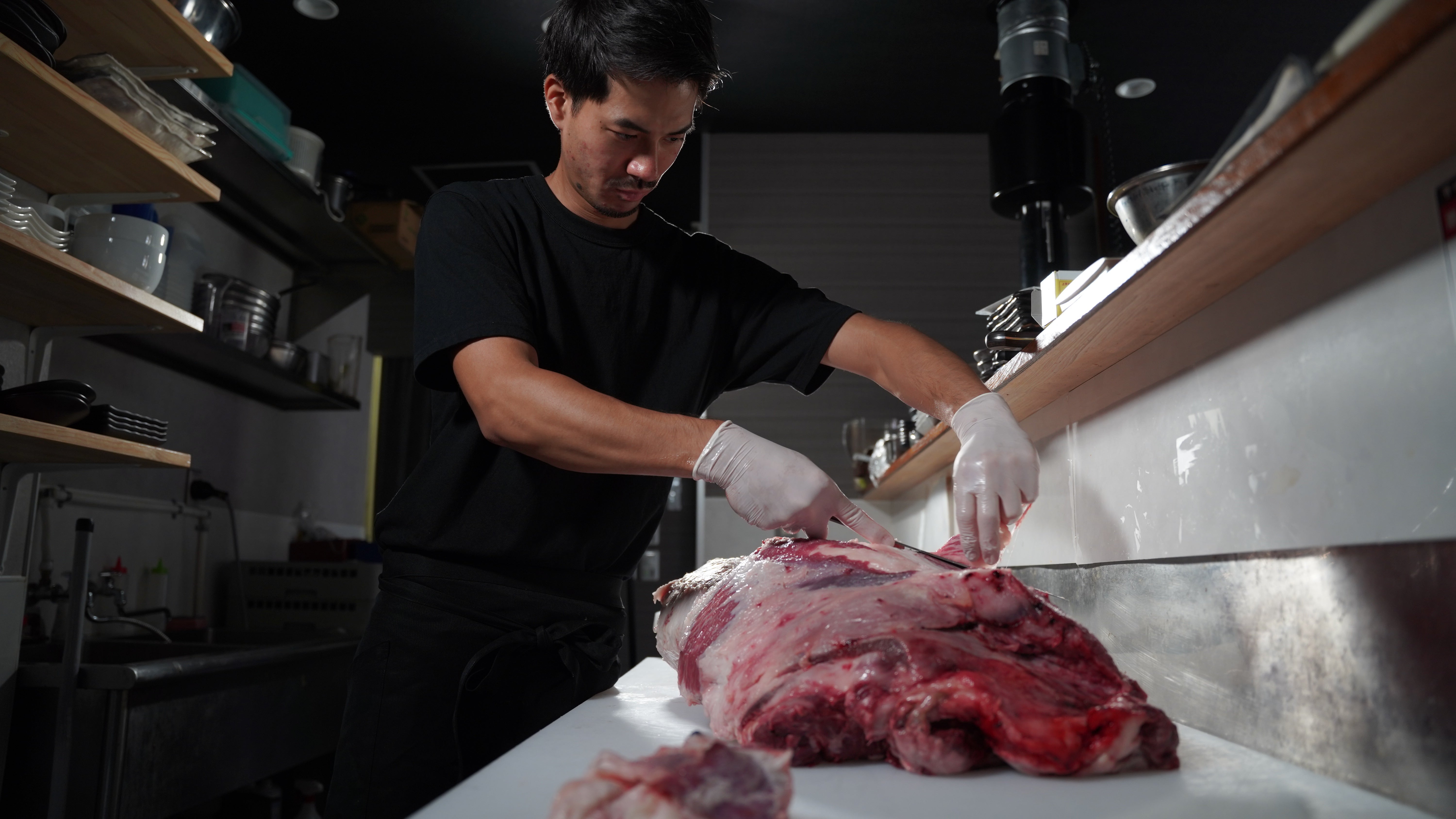 学生時代の精肉店での経験にて、肉の世界に魅了された事で、大学を中退。