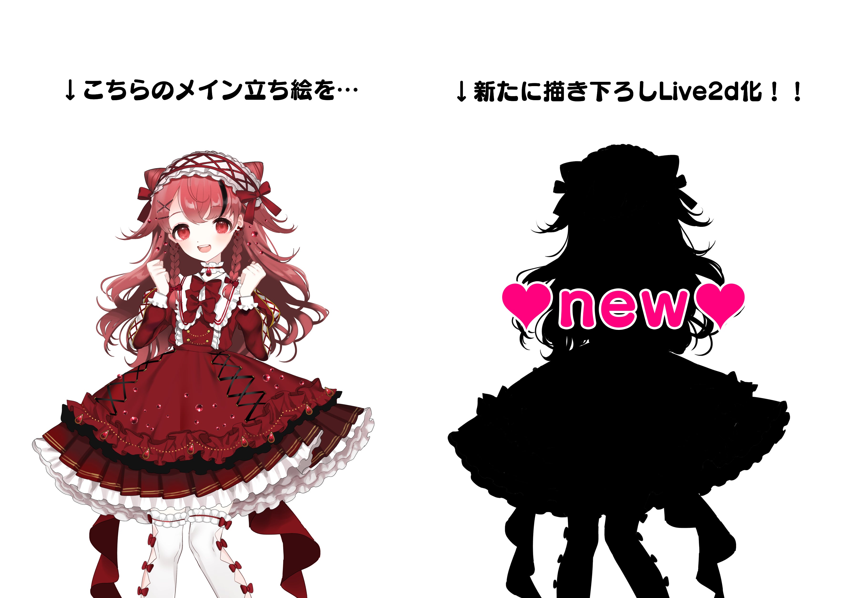 既にあるIRIAM配信用の立ち絵を"パーツ分け"するのではなく、"Live2d用として新規に"描き下ろしていただき、もっと自由に動き回りたい…表情豊かな配信をしたい…などなど