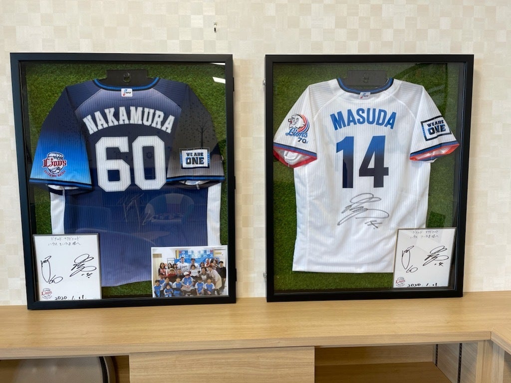 ■そして2021年はコロナ禍で、選手のハウス訪問は残念ながら叶いませんでしたが、選手の想いが詰まったサイン入りユニフォームを、素敵な額に入れて贈呈いただきました。