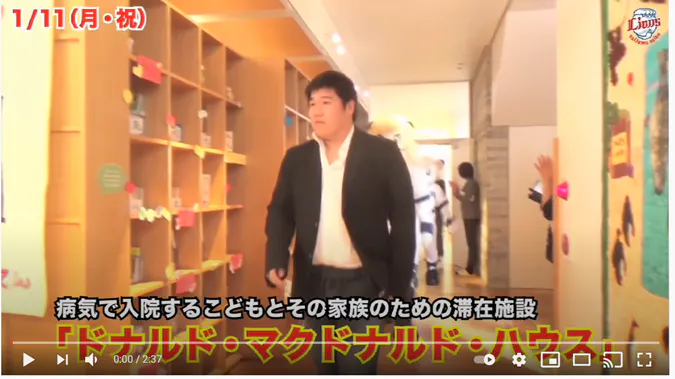 2021/09/17 10:47皆さま、こんにちは。2021年の埼玉西武ライオンズ選手の皆さんと一緒にドナルド・マクドナルド・ハウスを応援!プロジェクトがスタートして1か月が経ちました。皆さまの温かいご支援により、支援額が169,000円に達しました。このプロジェクトのページをご覧いただいた皆さま、応援してくださった皆さまに心より感謝申し上げます。皆さまお一人お一人の応援が、病気と闘う子どもとご家族の支えになります。これからも応援よろしくお願いいたします。長年にわたってドナルド・マクドナルド・ハウスを応援してくださっている中村剛也選手、実は2016年に東大ハウスを訪れ、一日ハウスマネージャーに就任されたことがあるのです!普段着用することのないエプロン姿でベッドメイキング体験を行ったり、就任日の1/11は鏡開きということで、闘病中のこどもたちとそのご家族にお汁粉を振る舞い、みんなで無病息災を祈りました。わずかな時間ではありましたが終始笑顔で1日ハウスマネージャーを務めた中村剛也選手の当日の模様をどうぞご覧ください!昨年から続く新型コロナウイルス感染拡大の影響もあり、今はハウスへの訪問が叶いませんが、現在も中村剛也選手は、増田達至投手、佐野泰雄投手と共に、それぞれの成績に応じた寄付をするなど、支援を続けてくださっています。皆さんも一緒に病気と闘う子どもとご家族のために、現在実施中のクラウドファンディングで、引き続きたくさんの応援をいただけますようよろしくお願いいたします!! もっと見る