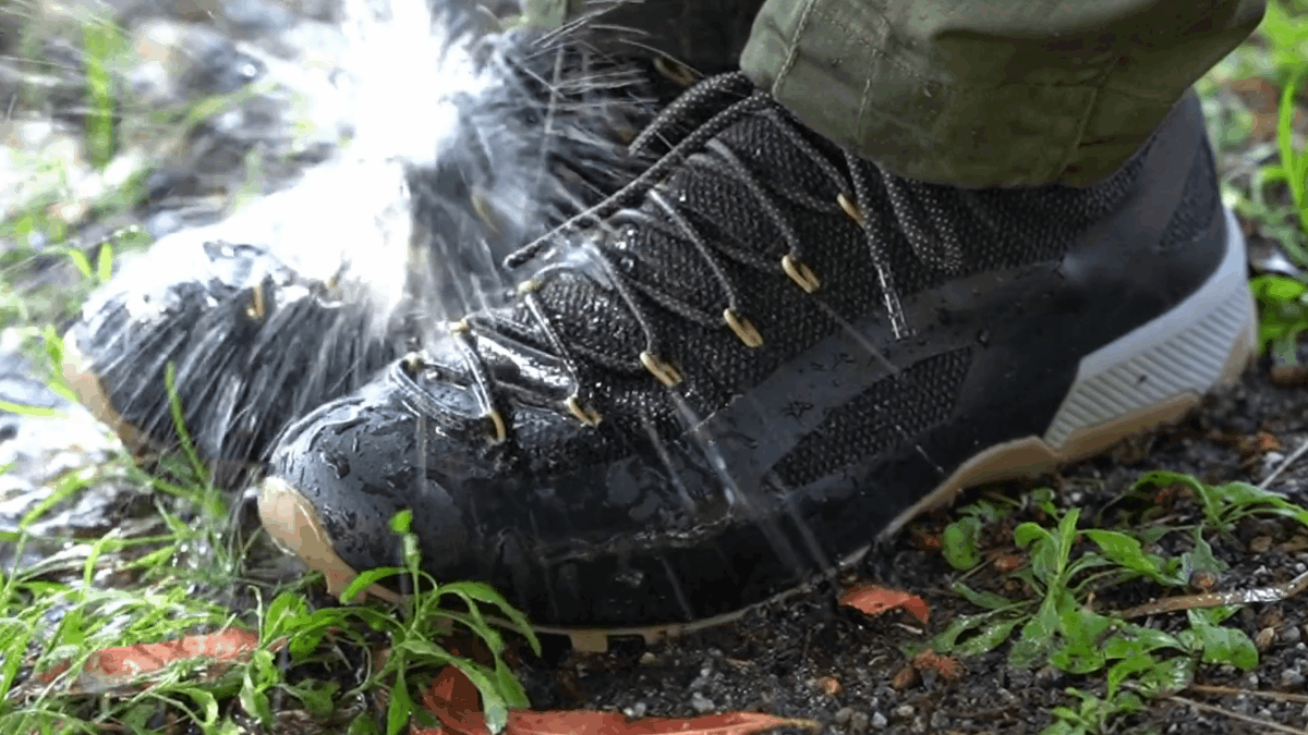 【UNICO WP COMBAT(コンバット)】は防水生地を使い、ベロの部分からも水の侵入を防ぐ防水仕様で、くるぶしまでしっかりとホールドされることで足場の悪い登山道での負担を軽減してくれます。
