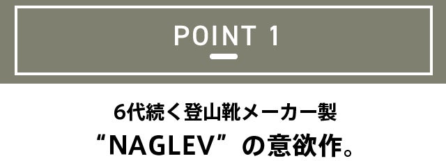 6代にも渡り130年間、靴づくりを続けているモーリン家のブランド“NAGLEV(ナグレブ)”が作り上げた、高機能アウトドアシューズです。