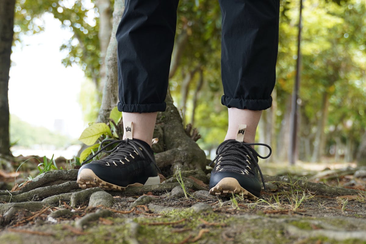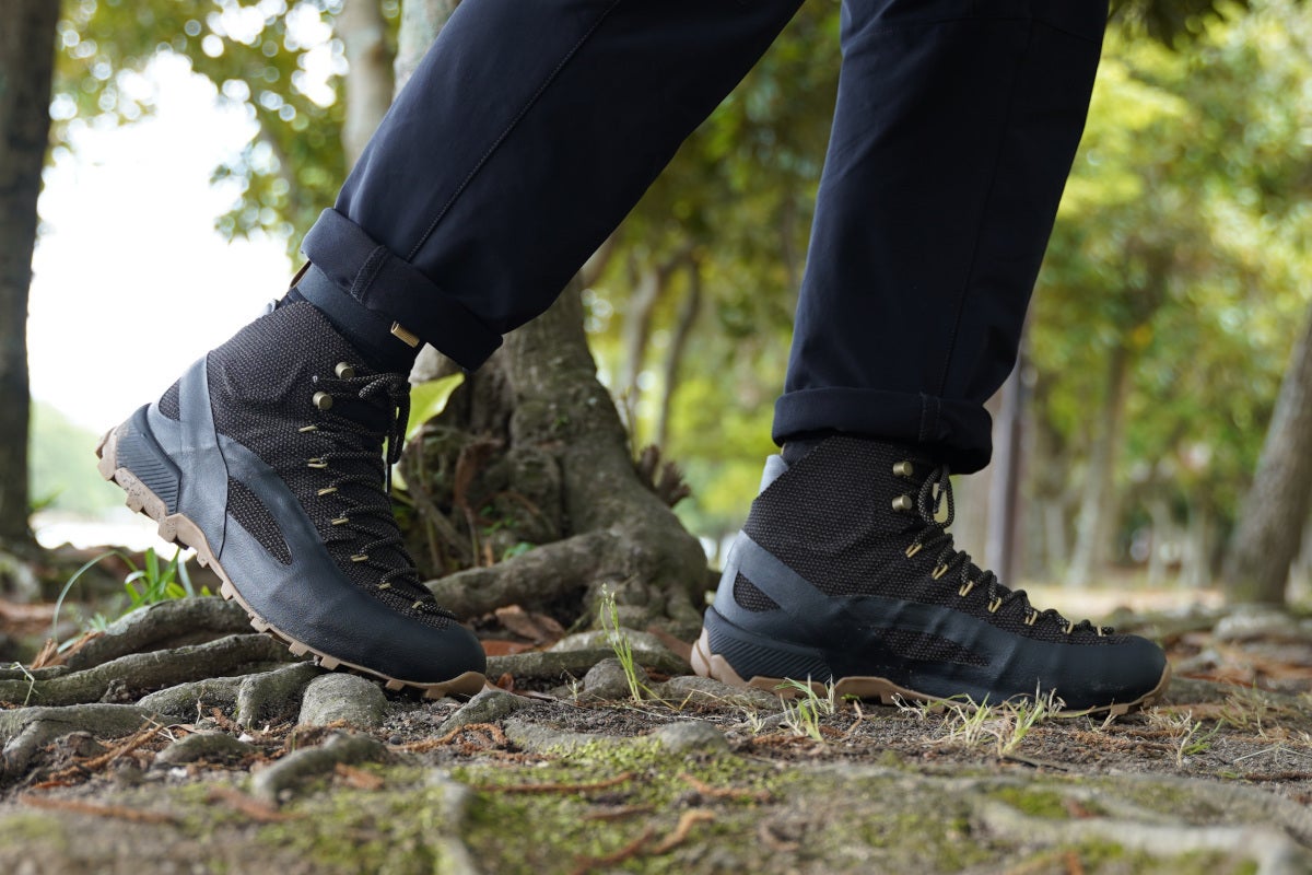 シンプルでミニマリストのようなルックスは従来のアウトドアフットウェアには無いデザイン。