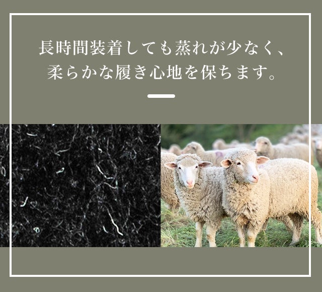 またインナー生地には天然繊維のウールと、ポリウレタン弾力繊維のライクラ※2の間に防水・透湿性のメンブレンを挟み、長時間装着しても蒸れが少なく、柔らかな履き心地を保ちます。