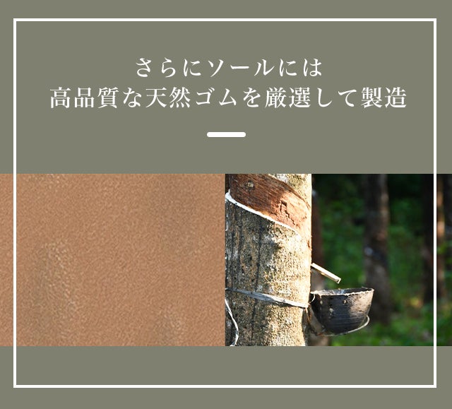 堅牢性が求められるアウター部分には現代化学の素材、素足を覆うインナー部分には天然素材を用いることで、末永く使え環境負荷が少ないシューズに仕上げられています。