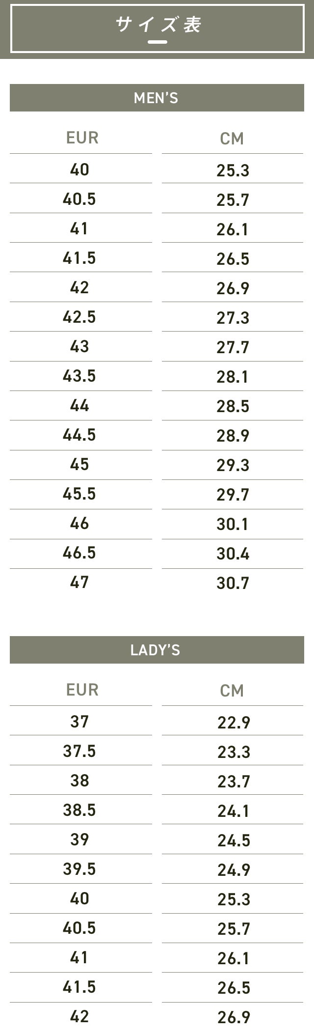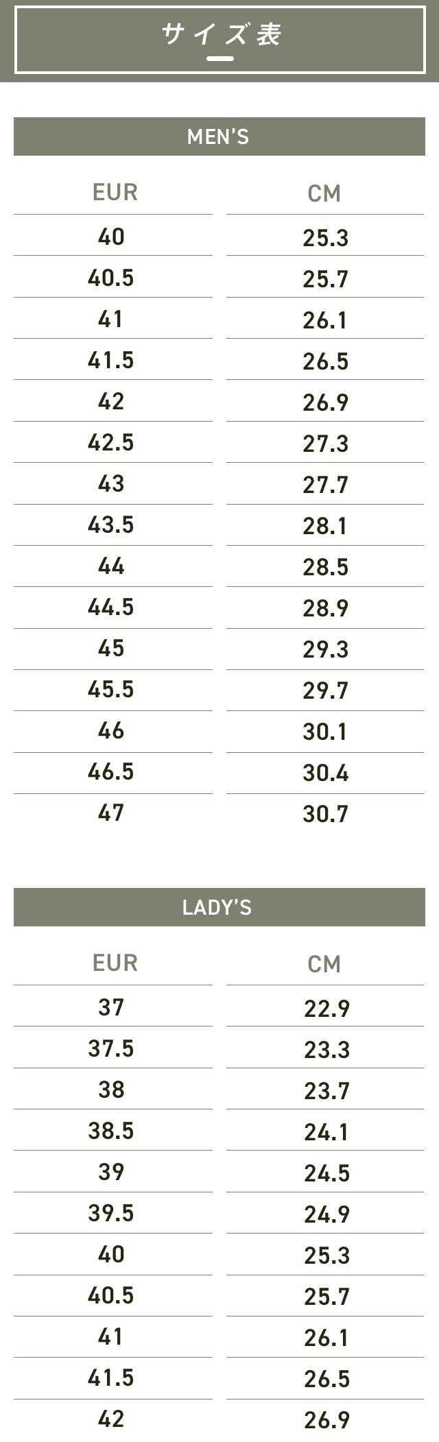 A:サイズ交換につきましてはお客様にお届け後1週間以内かつ未使用品(室内での試着は可)に限り1度だけサイズ交換をさせて頂きます。