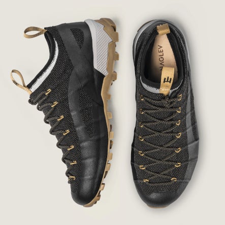 またシームレスシューズの弱点である耐久性を補強材として耐摩耗性に優れたTPU(熱可塑性樹性ポリウレタン)を採用することで解決し、“NAGLEV”のブランド名に恥じない機能的でスタイリッシュなアウトドアフットウェアが完成。