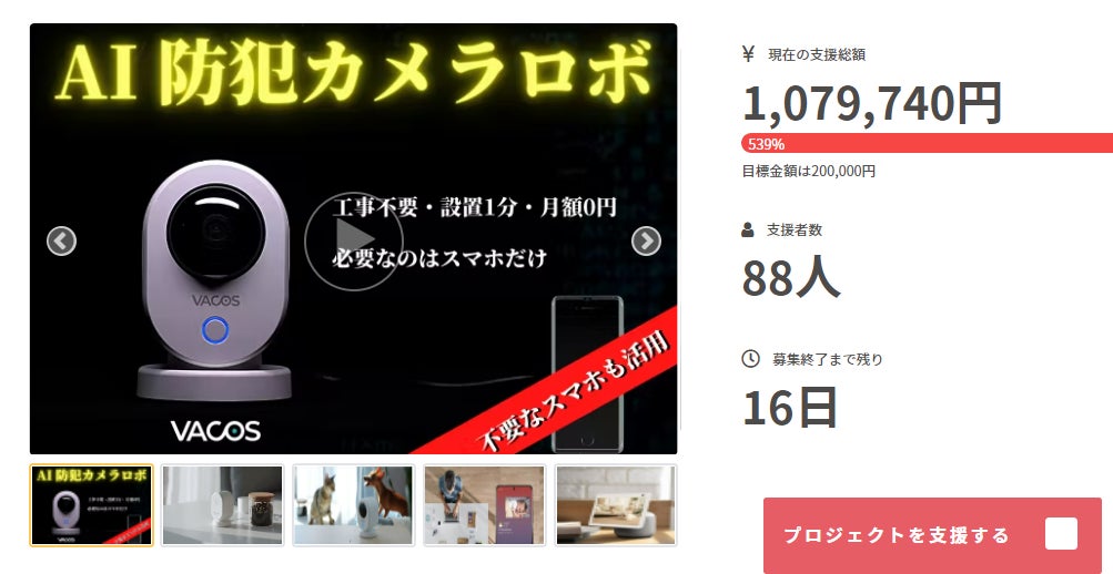 などを備えた『Vacos Cam PT』で、安心して外出できる環境を整えてほしいです。