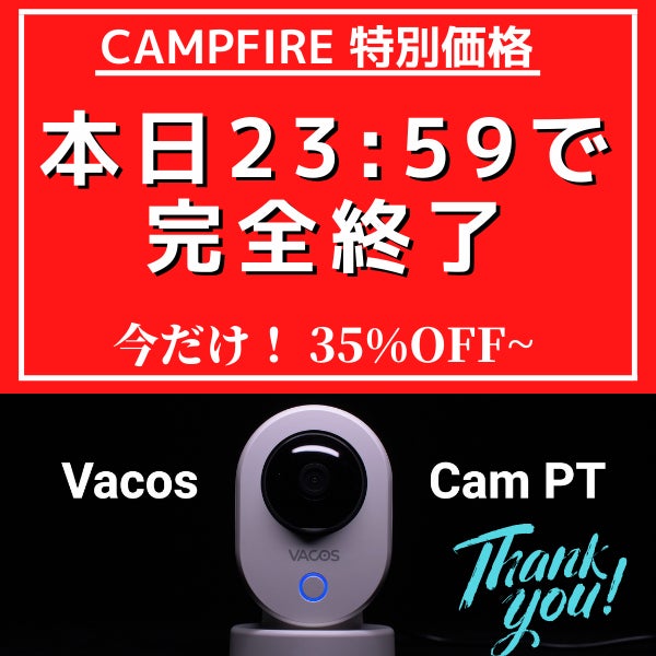 AI搭載のコードレス防犯カメラVACOS CAM IR の公開まであと1時間になりました。日本には、500万台以上の防犯カメラが設置されているようです。とくに犯罪の多い都道府県(東京・大阪・福岡)などでは多くのカメラが設置されております。ただ、世界的に見るとその数は多いとは言えないようです。 1位 中国 2億台 2位 米国 5,000万台 3位 ロシア 1,350万台 4位 日本 500万台 4位 ドイツ 500万台中国がダントツでトップの台数を設置しております。犯罪を未然に防ぐ!犯罪の証拠として記録する!など世界的にみてもこれからもどんどん防犯カメラの設置は進むと思われます。防犯カメラを設置するのが当たり前のような世の中に突入するような感じさせします。防犯意識を高め、犯罪に巻き込まれないようにすることがとても大切です。簡単に設置できるコードレス防犯カメラVACOS CAM IRは、本日20時00分に公開いたします!最大32%OFF!限定数での販売になりますので、この機会をお見逃しなく。気になる方は以下URLより事前にチェックしてください。↓ ↓ ↓https://camp-fire.jp/projects/587884/preview?token=14vc71va