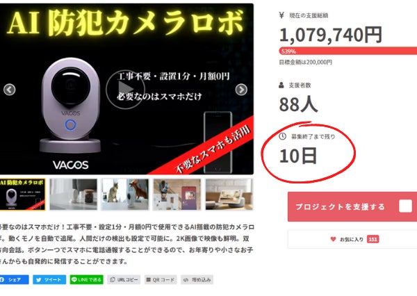 先日問い合わせで、AI防犯カメラロボ『Vacos Cam PT』について以下のようなご質問をいただきました。『購入に迷ってます。 実際の画質を見たいです。』もちろんお見せします!実際にスマホに映し出される、ライブ映像を用意しました。画面上の操作で、画質を切り替えることも可能です。動画の中の壁掛け時計に注目してみてください。設定切替による画質が違いがわかると思います。動画はこちらになります。↓↓↓https://youtu.be/kmtJ7BEttFcAI防犯カメラロボ『VACOS CAM PT』のプロジェクトも残り、、、3日です。最後までよろしくお願い致します。https://camp-fire.jp/projects/view/464438