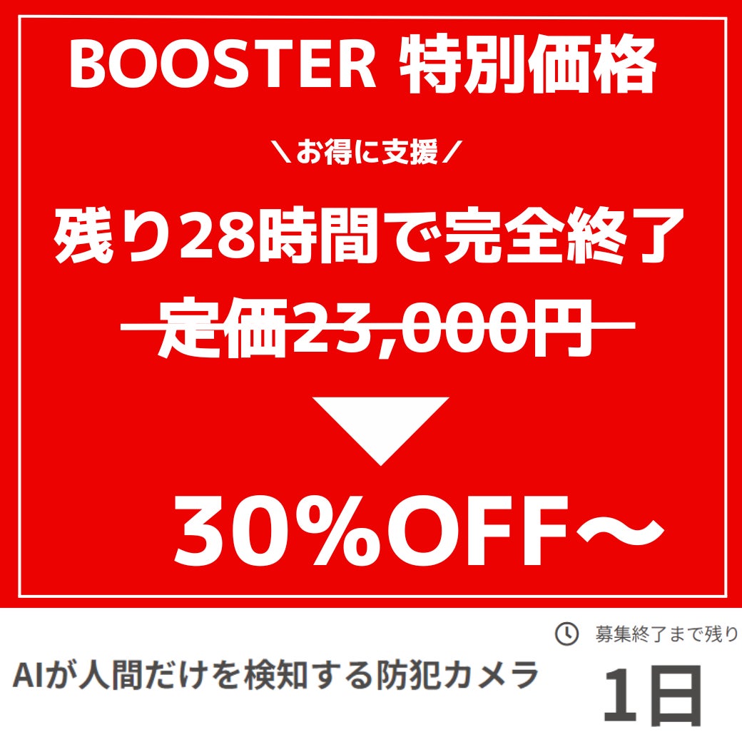 いつもお世話になっております!前回のプロジェクトに続きまして、AI×アプリで管理する防犯カメラを、昨日11月30日に販売開始いたしました。いまなら最大40%OFFで購入することができます。https://camp-fire.jp/projects/view/723051今回の商品は、画像も高画質で夜間でもフルカラーで映せることができ、スマホのアプリで全てを管理できる商品になっております。さらに、スポットライトやサイレンで警告することもできるため、防犯カメラの最大の特徴である、「犯罪を未然に防ぐ」、「証拠を残す」ことが簡単にできる製品です。日本でも物騒な事件が多くなっておりますので、この時代に必要な商品だと考えています。共働きのご家庭は、家を空けている時間も多いと思います。外出先からいつでもご自宅の周りをモニタリングできることができ、お子さんが帰った来たら、スマホアプリに通知してくれる機能もありますので、一度見てみて下さい。ドライブレコーダーの普及が増えたように防犯カメラの設置率も高まり、犯罪やいたずらが起こらない環境になっていければと思います。みなさんの応援、よろしくお願いします。購入はこちらです↓↓https://camp-fire.jp/projects/view/723051