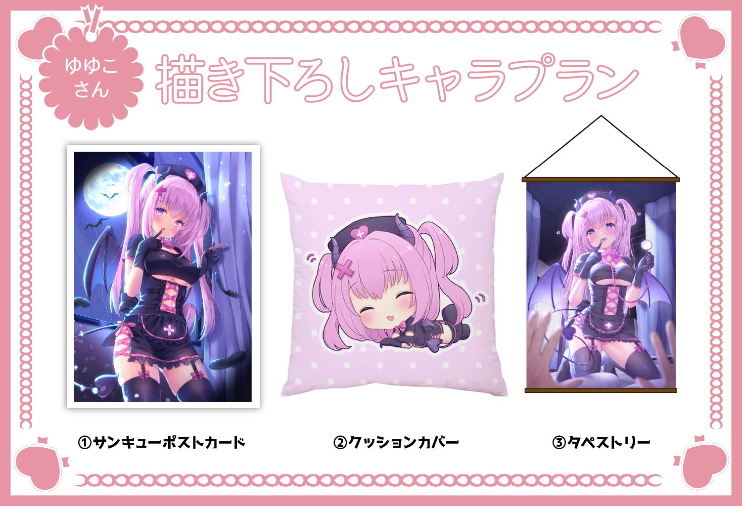 コスチューム以外にもゆゆこさんがこのプロジェクトの為に描き下ろしたSDキャラや新絵のタペストリー、サイン付きアクリルアート等ファン必見のリターンを多数ご用意してもらっています。