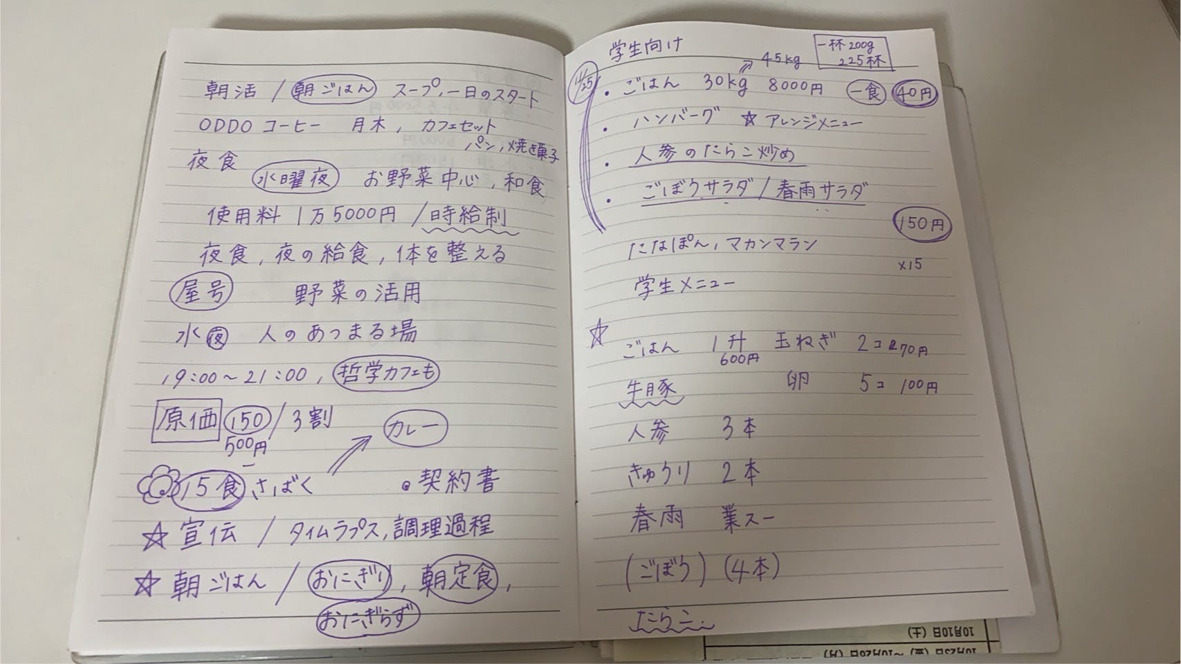 - こはく食堂の企画ノート