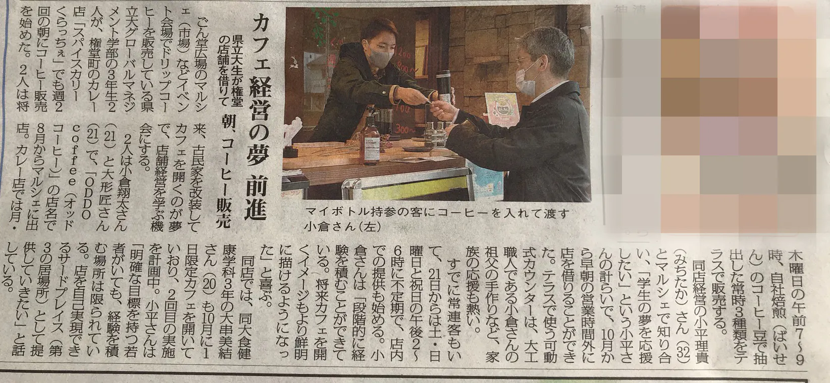 - 朝活コーヒーの新聞記事(長野市民新聞2020年11月14日掲載)