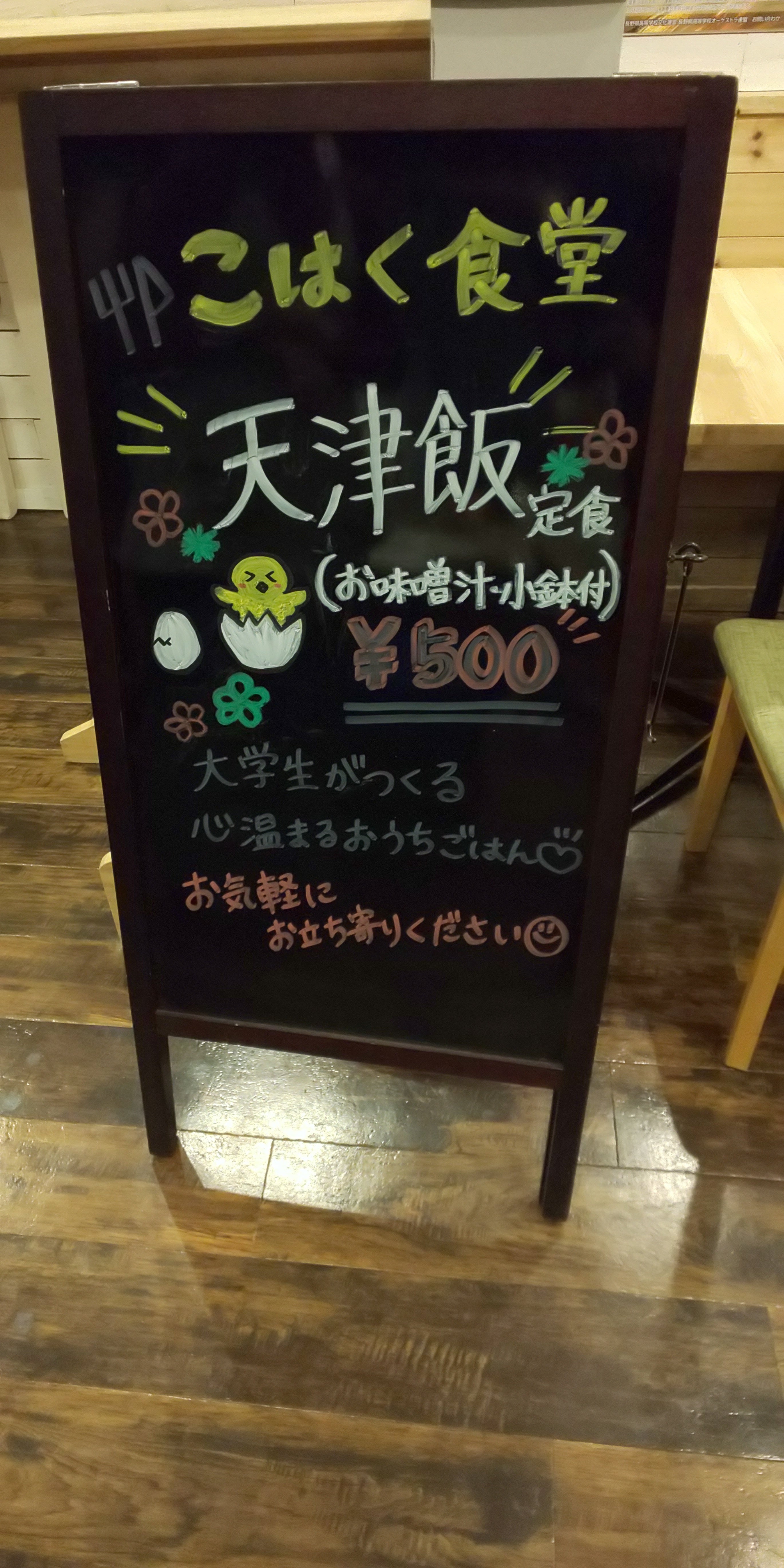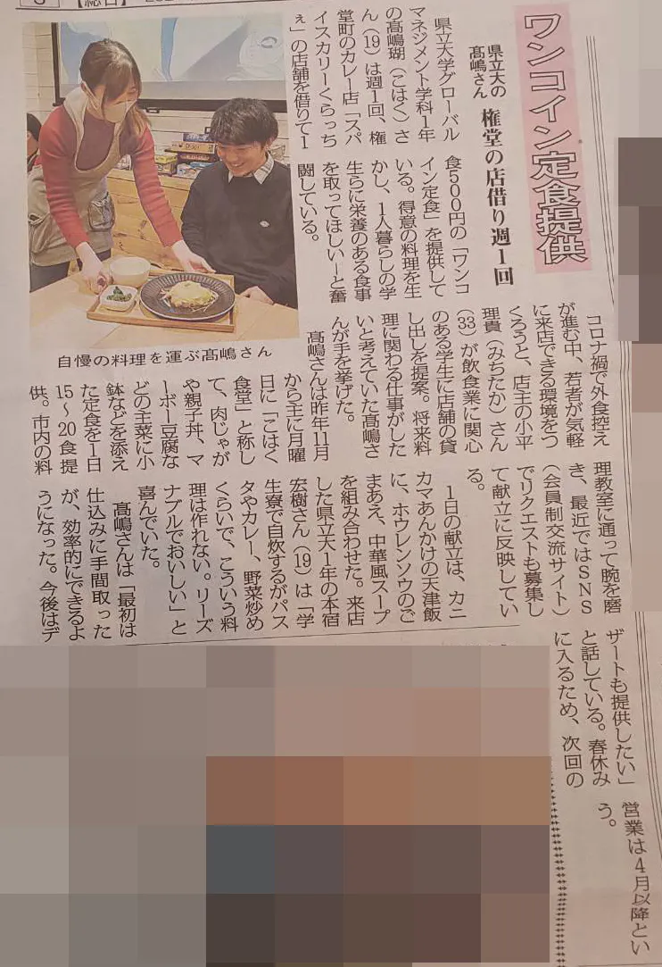- 長野県立大学の料理好き女子大生、高嶋瑚(こはく)さんとくらっちぇ店主による学生のための食堂です。