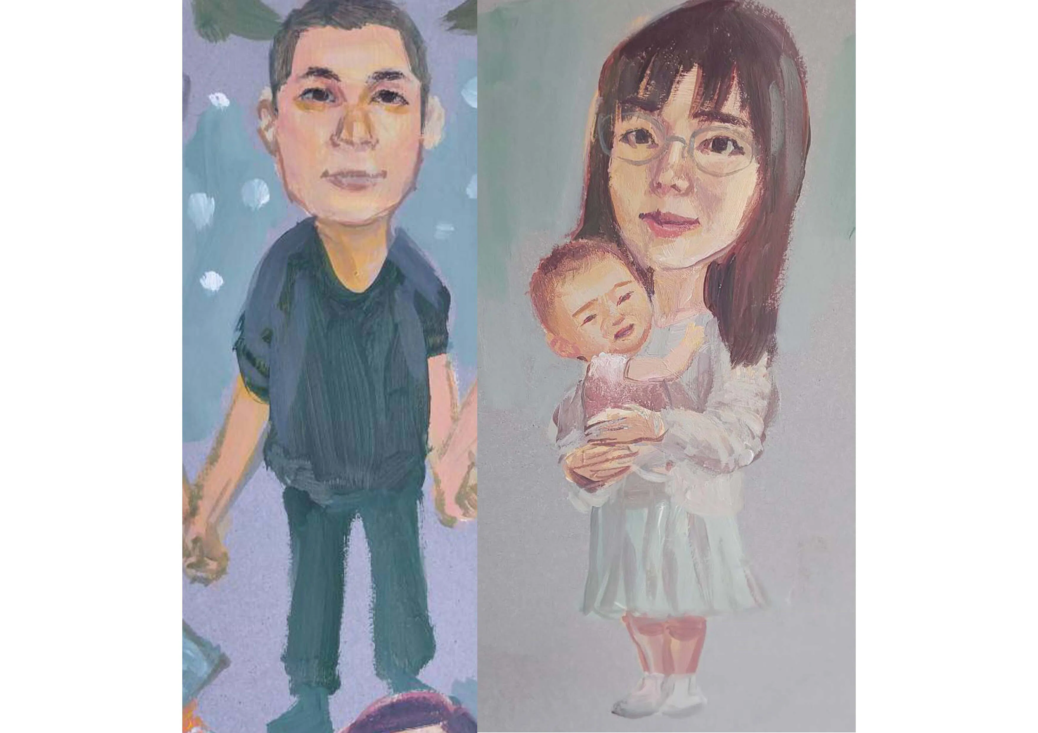 左が私、右が妻と娘です。ODDO COFFEEの店内に常時公開されています。(painted by tomoyaarts氏)