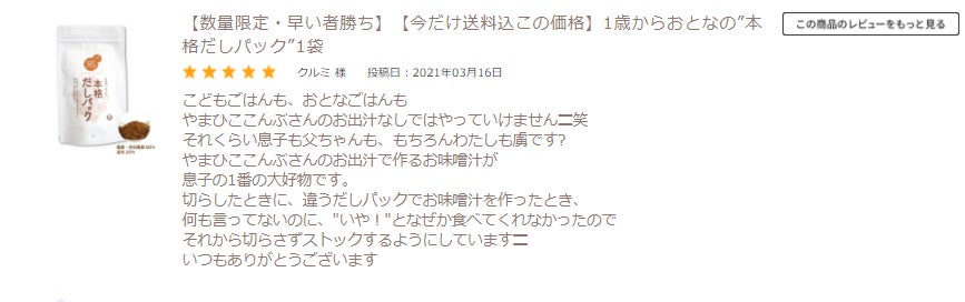 2021/08/27 13:48香り、抜群です!応援ありがとうございます!いつまでこの生活が続くかと思うと気が滅入りますね。食卓を豊かにして家族が笑顔になる食卓いいですね!コロナ禍の中、元気を頂きました! ありがとうございます。商品と共に食べる楽しみをお届けできるよう頑張ってまいります。確かに美味しいおだしをとると、味噌が少なめでも美味しいですよね!長きにわたりたくさん昆布使って頂きありがとうございます!地味な昆布ですが、あるとないとでは美味しさが異なります!今後ともどうぞよろしくお願い致します。ご支援ありがとうございました。ありとうございます。お客様の顔を思い浮かべながらに、スタッフでお客様に喜んでもらえるセットを考えました!うれしいお言葉ありがとうございます。とんでもございません。ご支援頂き本当にありがとうございます。とても嬉しいです。 もっと見る