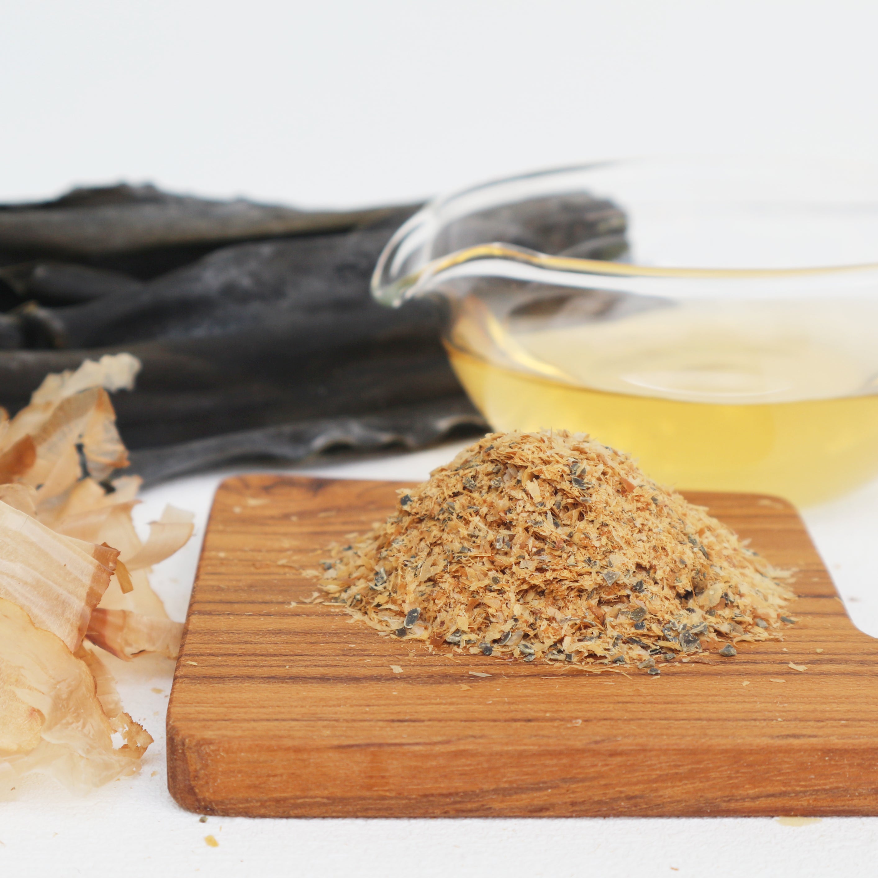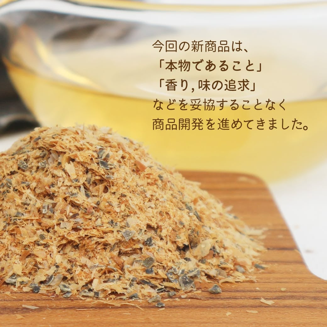 昆布、鰹節は粉末ではなく粉砕にすることでだしがらの料理も作りやすい形状となっております。