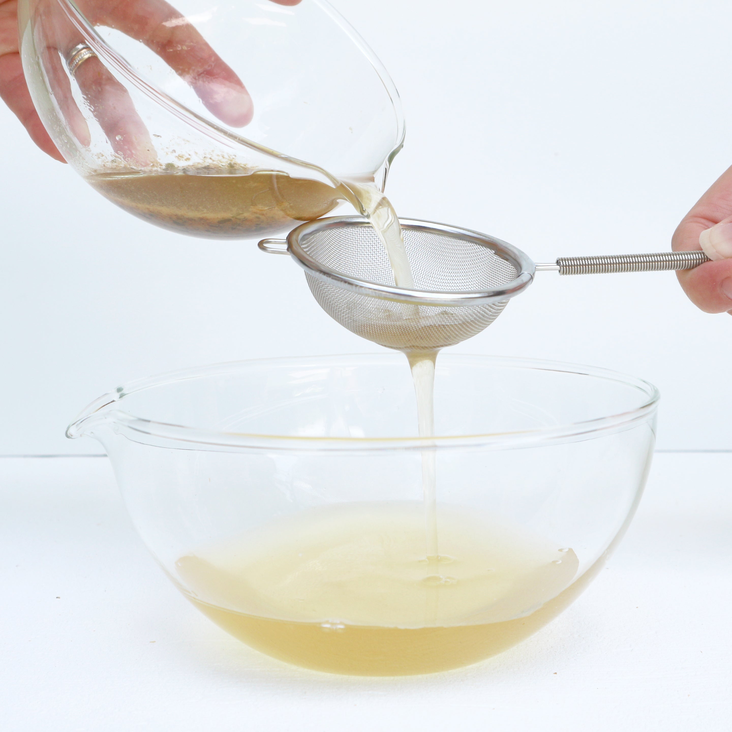 《 お湯 ver. 》沸騰したお湯100mlに原料のおだし大さじ1/2を入れ5分おく。