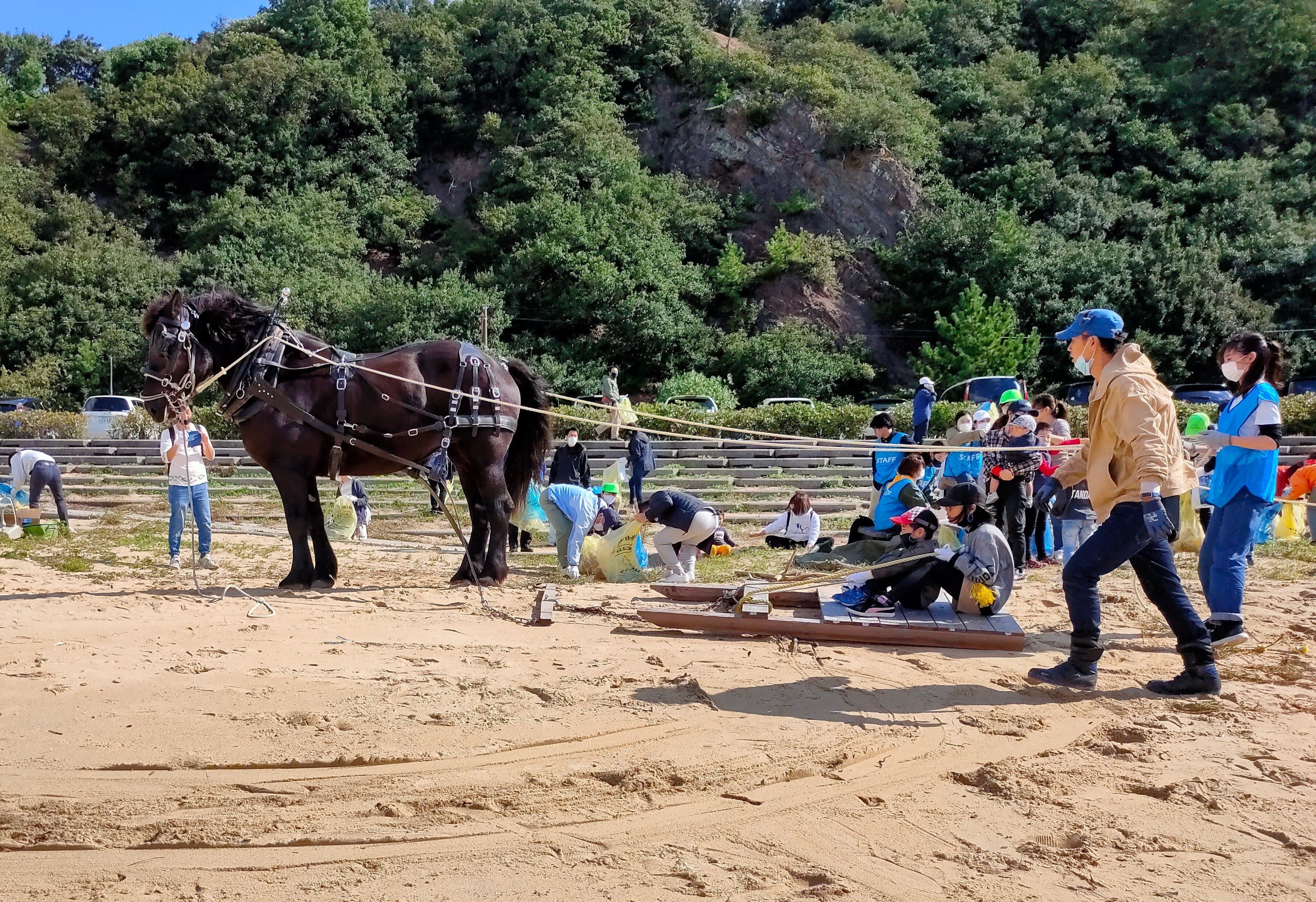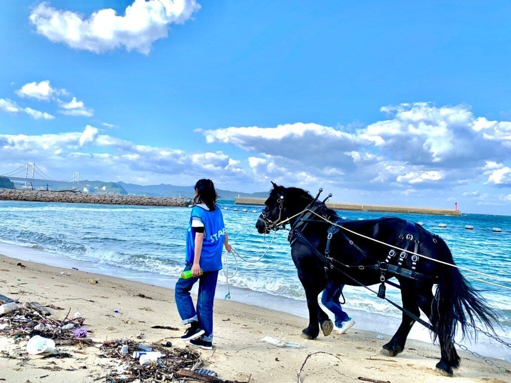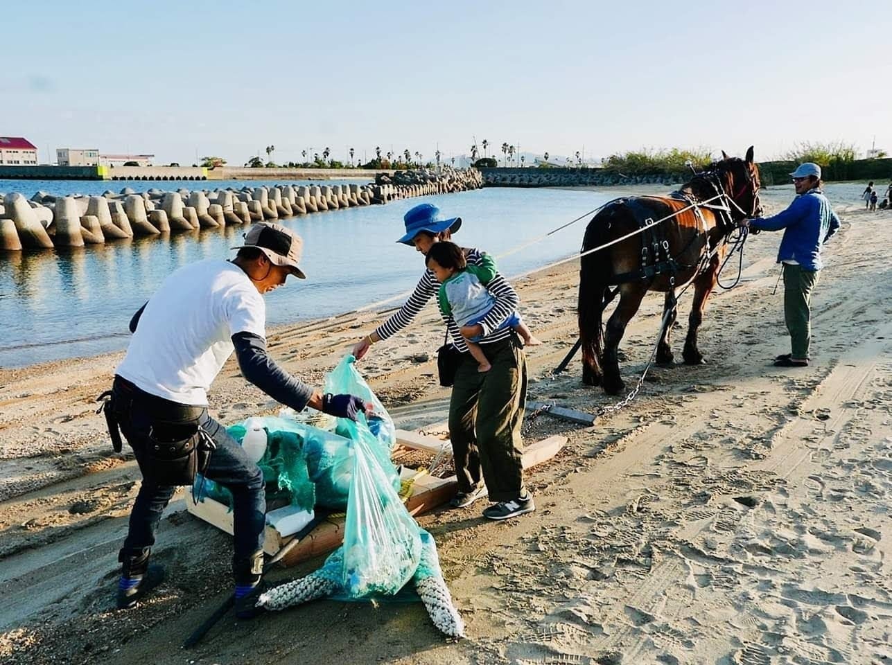 「馬とのビーチクリーン」はシェアホースアイランドで数年前から取り組んでいる活動で、