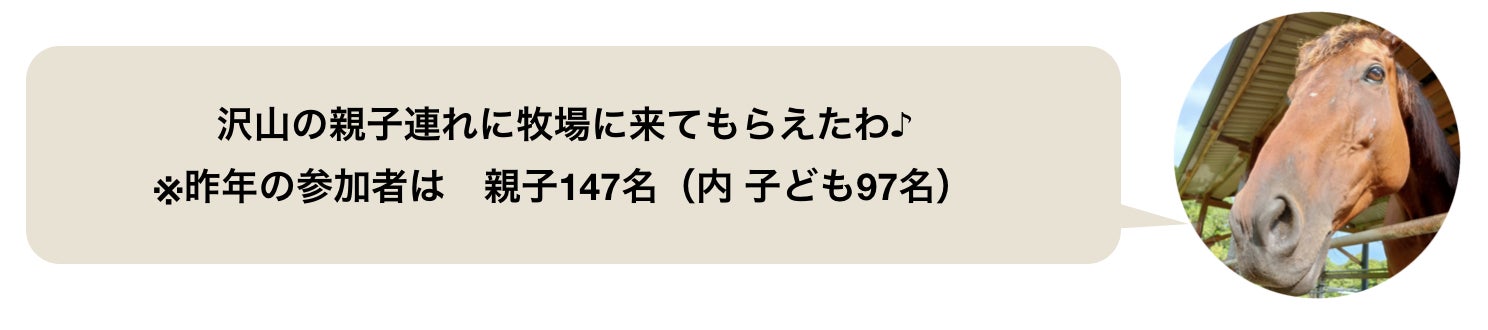そのタイミングに地元の子どもたちを牧場に招待して、非日常な存在の馬を少しでも身近に感じてもらいたいと思います。