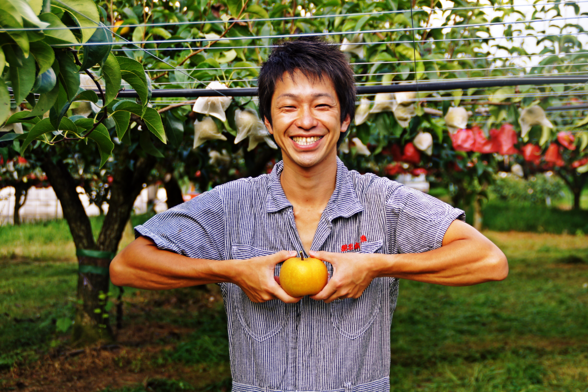 15年前、僕は美容師をしてましたが、その時は仕事にやりがいを持ってはいませんでした。転機が訪れたのは、休日に梨農園を営む父親から「梨の配達に行ってくれ」と頼まれて、しぶしぶお客さんに梨を届けに行ったときでした。梨を届けただけなのに、お客さんは「ありがとおおお!!」と満面の笑みを見せてくれたんです。