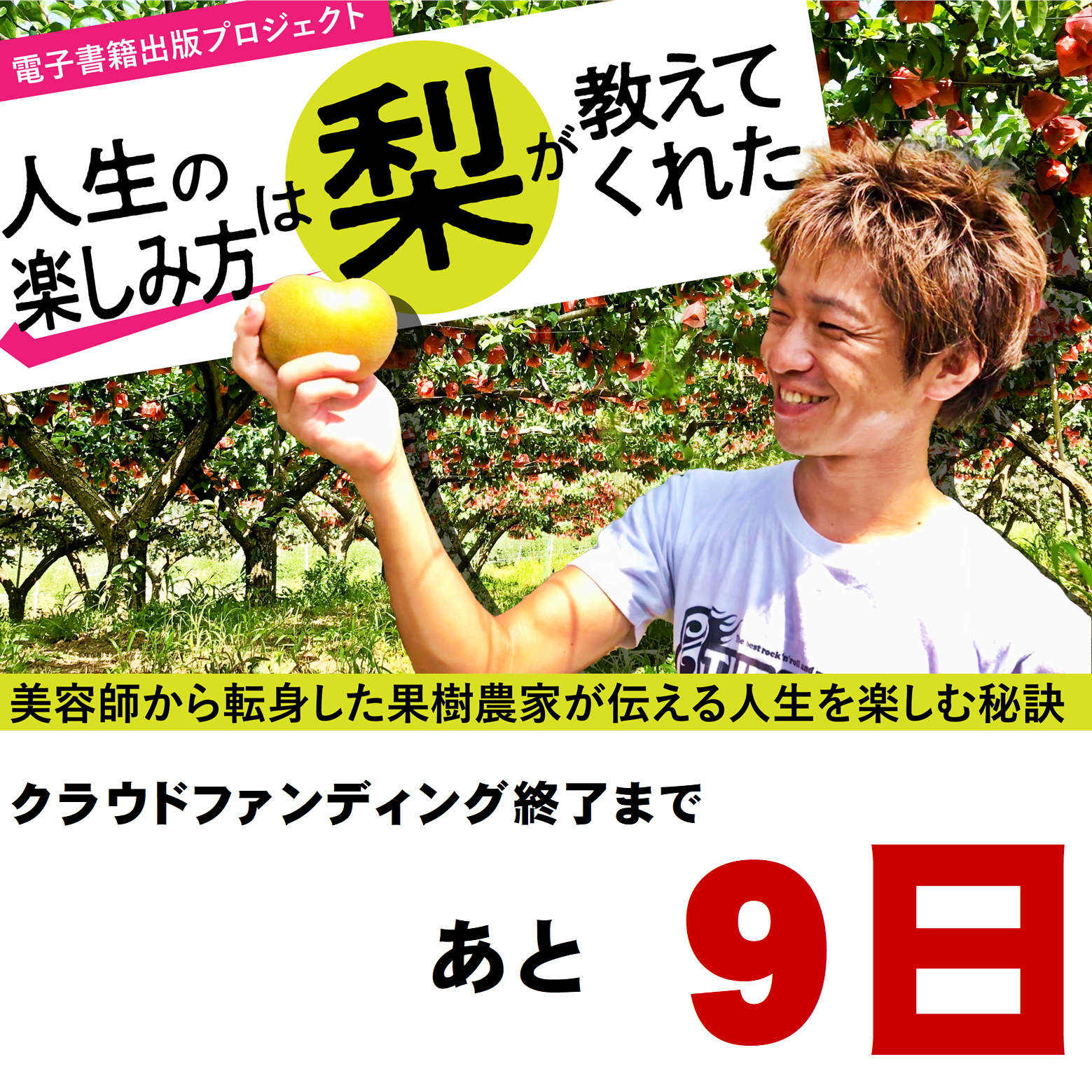 そこで、梨づくりを通じて人生で学んだことを一冊の本にまとめたい!読んだ人が1mmでも前向きになれるような本をたくさんの人に届けたい!そんな熱い想いでクラウドファンディングに挑戦することにしました。