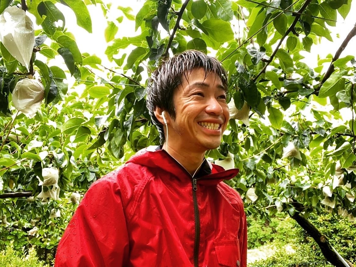 雨の中の仕事も育った梨を見ているとワクワクしてテンションが上がります♪