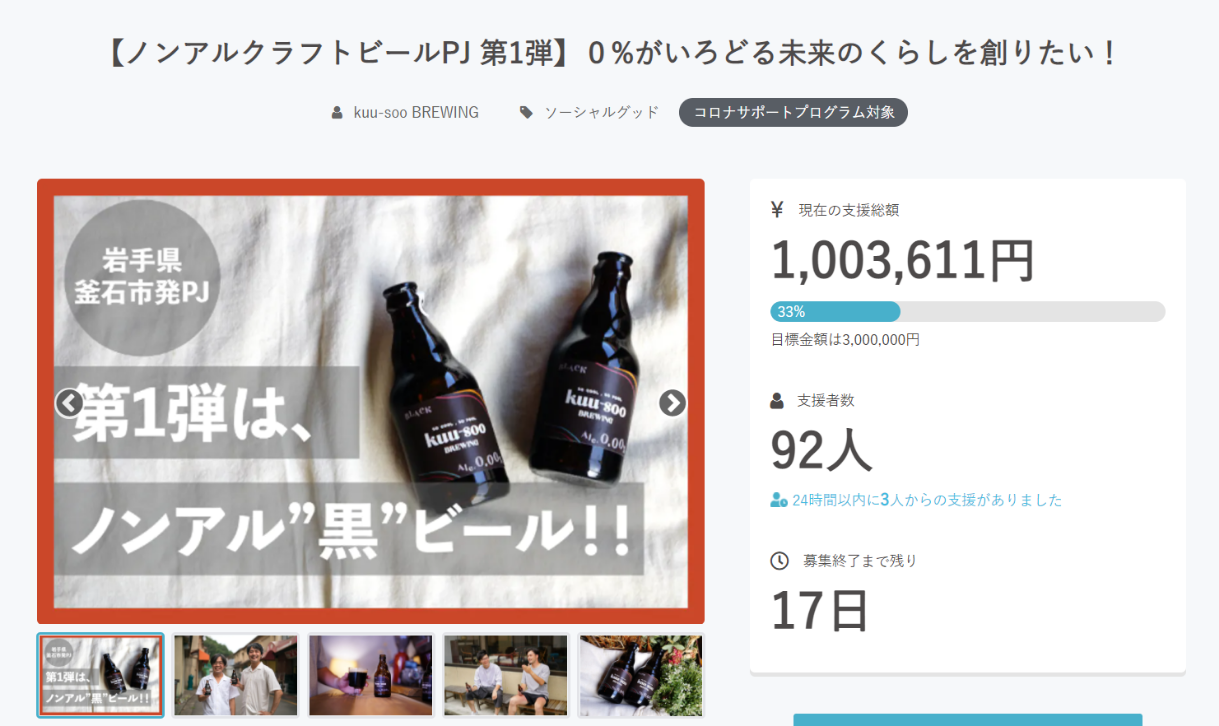 最初の3日間後はすこしづつご支援をいただき、ようやく目標金額の1/3に到達しました!