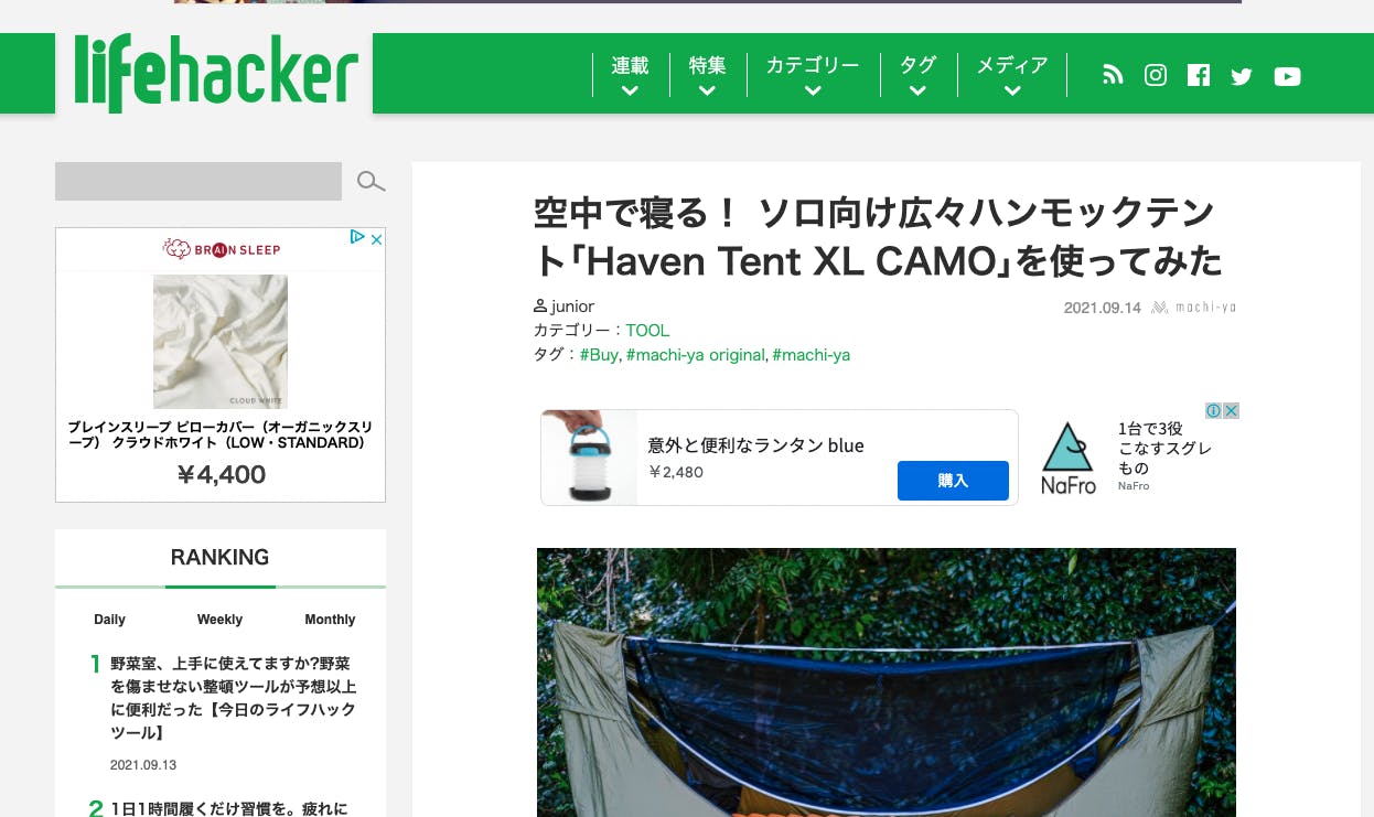 人気Webメディアのライフハッカー(lifehacker)さんにレビュー記事が掲載されました。