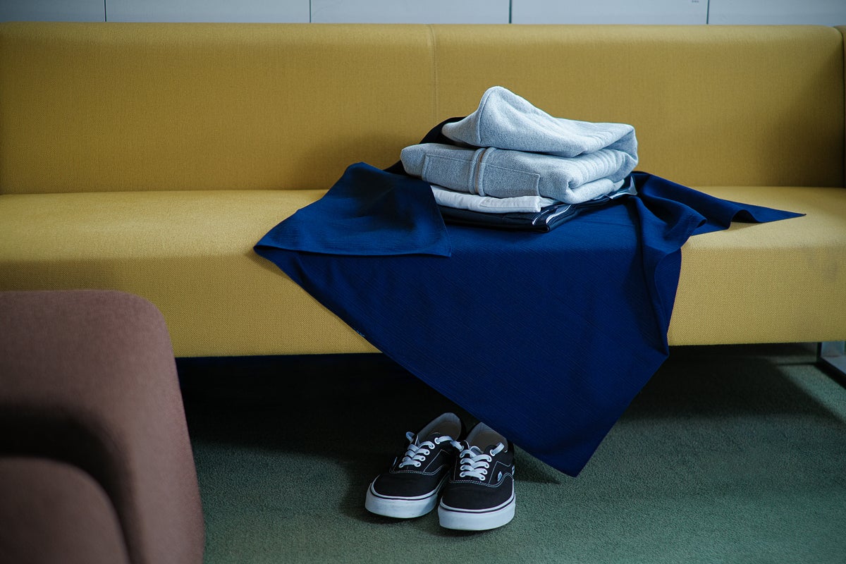 自然環境のもので染めつけている為、布に残った灰汁や藍の色落ちがあります。