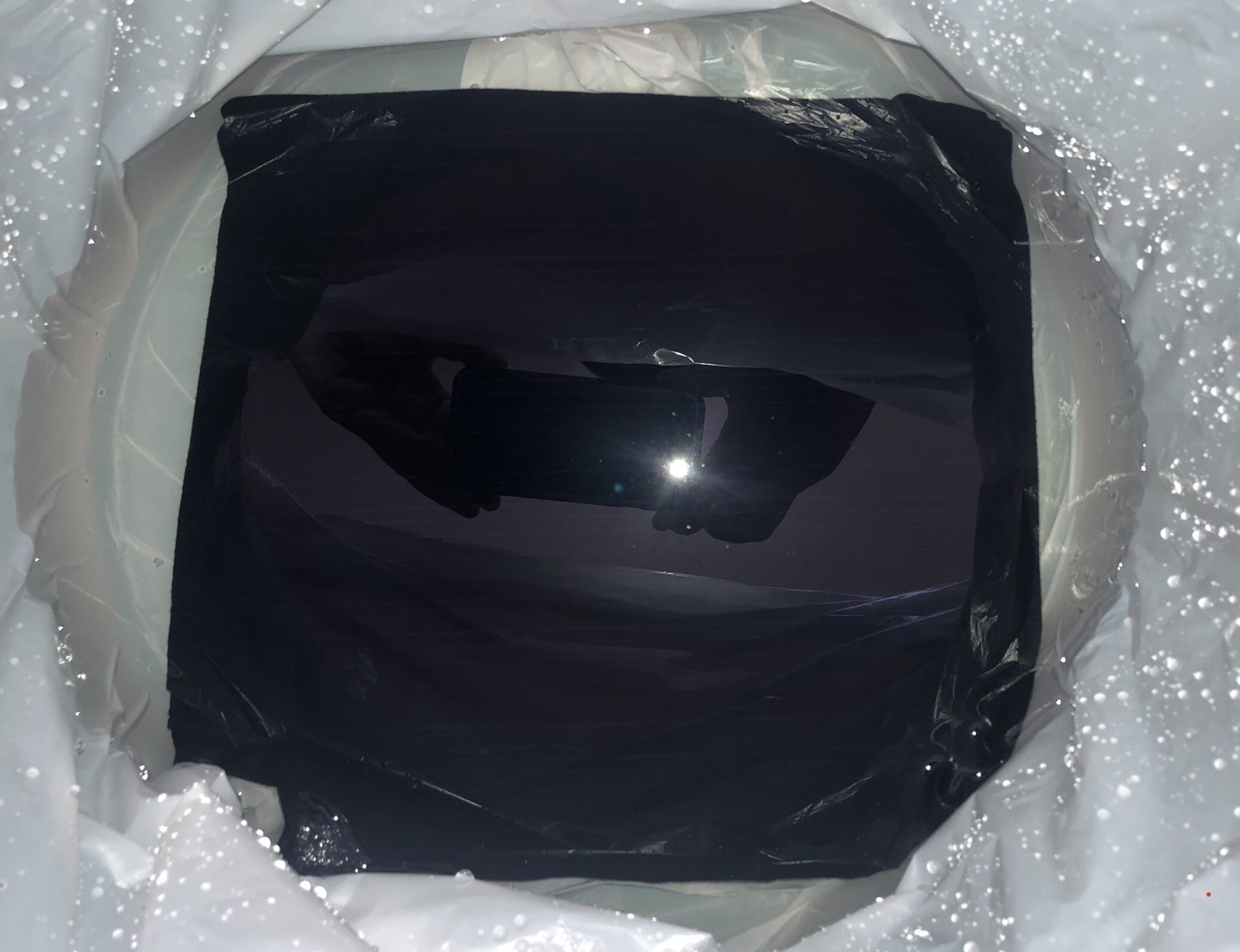 水に濡れたままの風呂敷に白い生地を30分間挟みました。