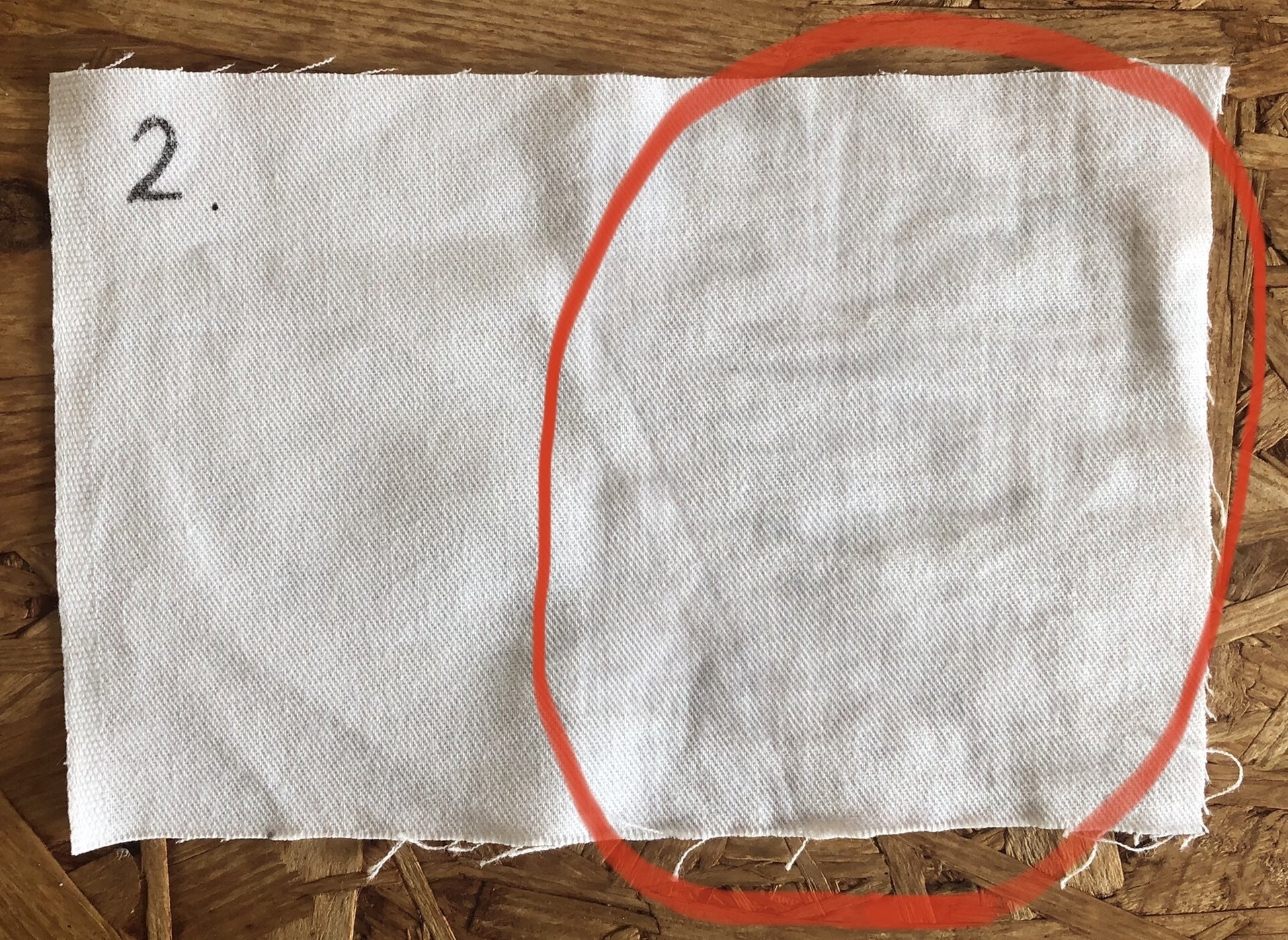 染め上がった風呂敷を白い生地に赤の矢印の方向に人差し指の腹で50回擦りつけました。