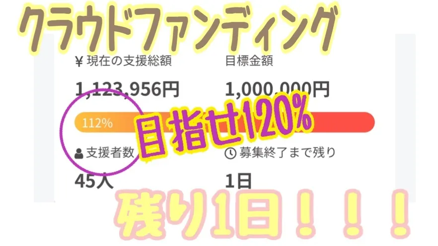 そして最終日の24時まで最後120%目指して頑張るので応援、ご支援お待ちしております。