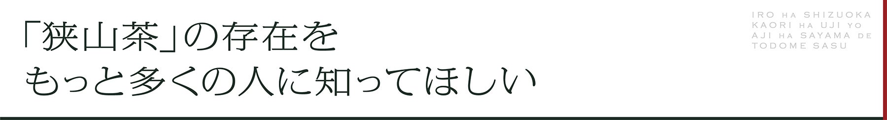 そのような背景から、静岡茶や宇治茶と比べ、狭山茶はまだまだ知名度が低く、多くの人に知られていない現状があります。