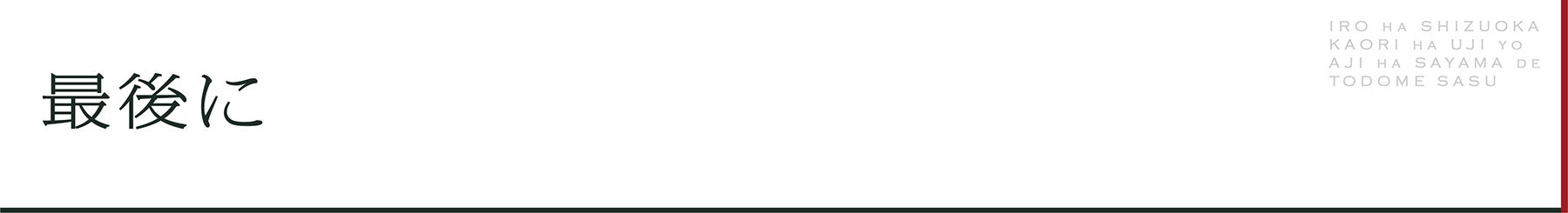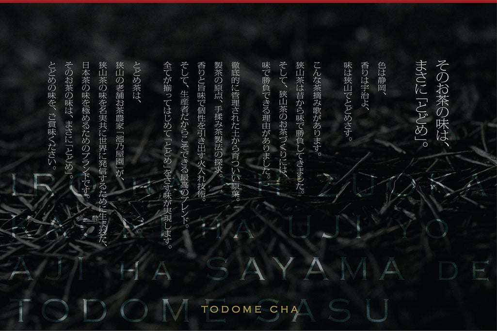 このとどめ茶を通じて、ひとりでも多くの人たちに“狭山茶”のブランド、そして日本茶の良さを知っていただくことができれば、こんなに嬉しいことはありません。
