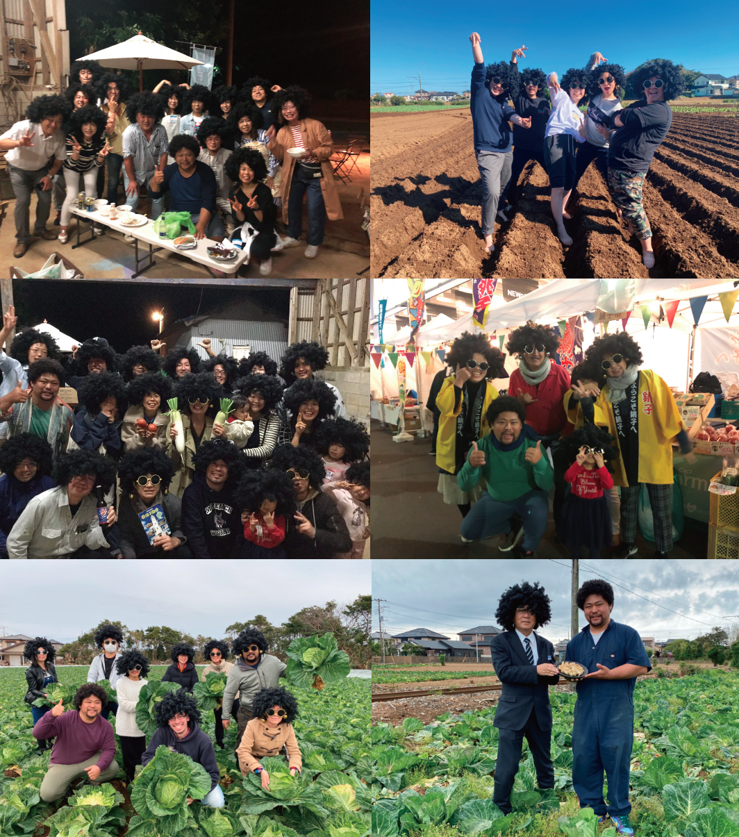 約3年間にアフロのカツラを被っての農業体験・都内での販売会など