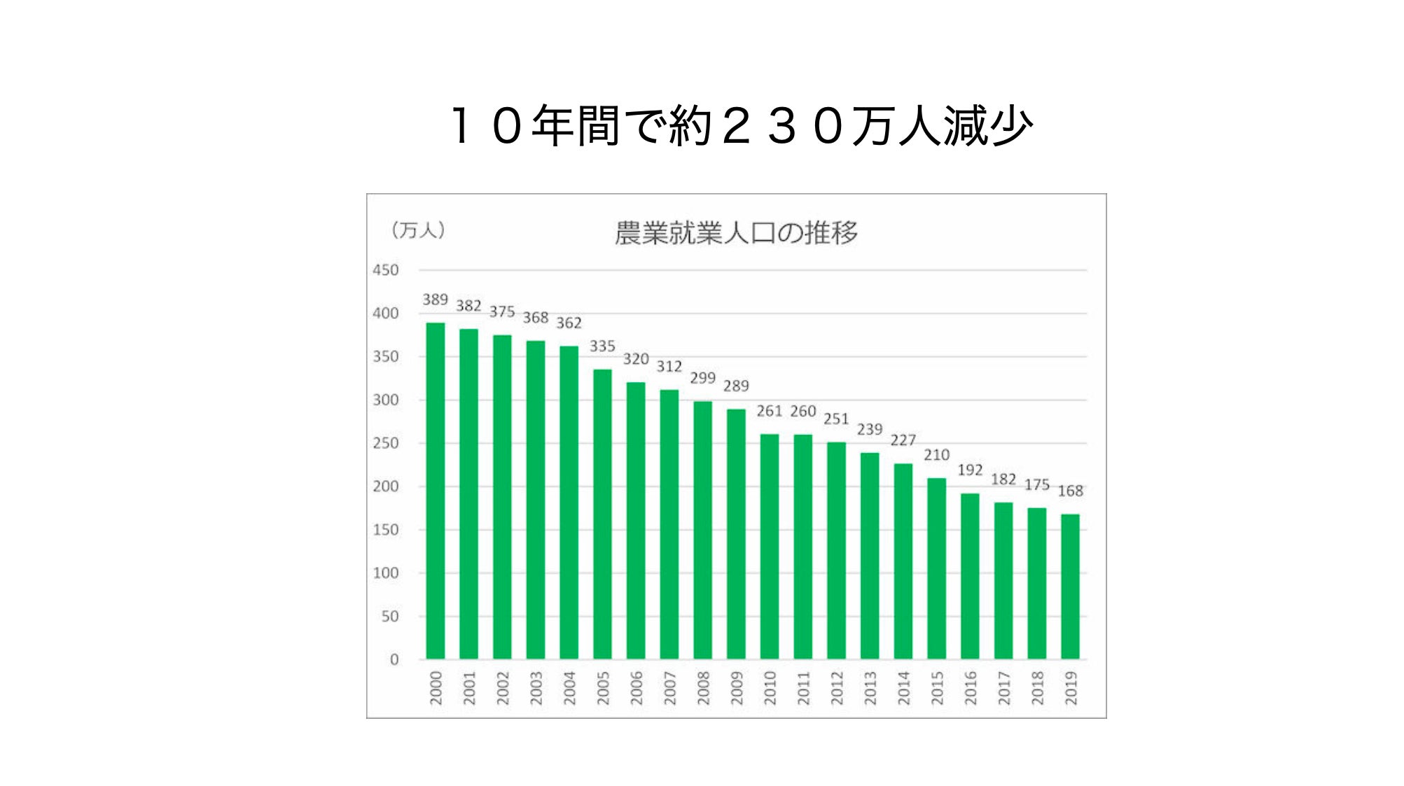 日本の農業従事者は10年間で230万人も減少し