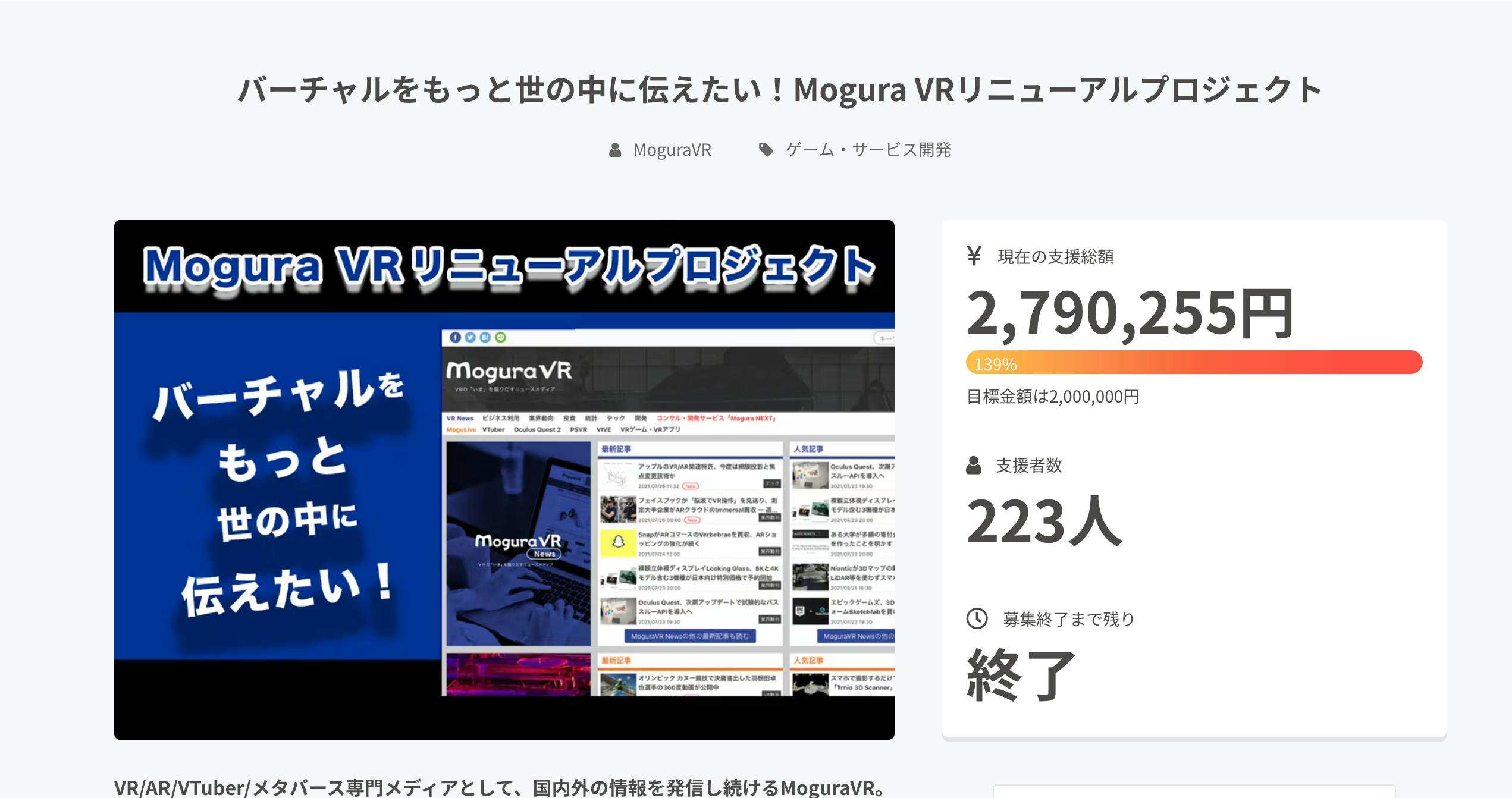 クラウドファンディングでご支援くださった方々ありがとうございました。MoguLiveではサイトリニューアル後も引き続き、VTuberやVRゲーム、メタバースなどバーチャルに関わる様々なエンターテイメント情報をお伝えしていきます。また情報をシンプルに発信するだけでなく「実際に体験すると、どんな感動を得られるのか」「バーチャルによって日々の暮らしはどのように変わるのか?」といったところまで深堀りしていきたいと考えております。今後とも何卒よろしくお願いいたします。